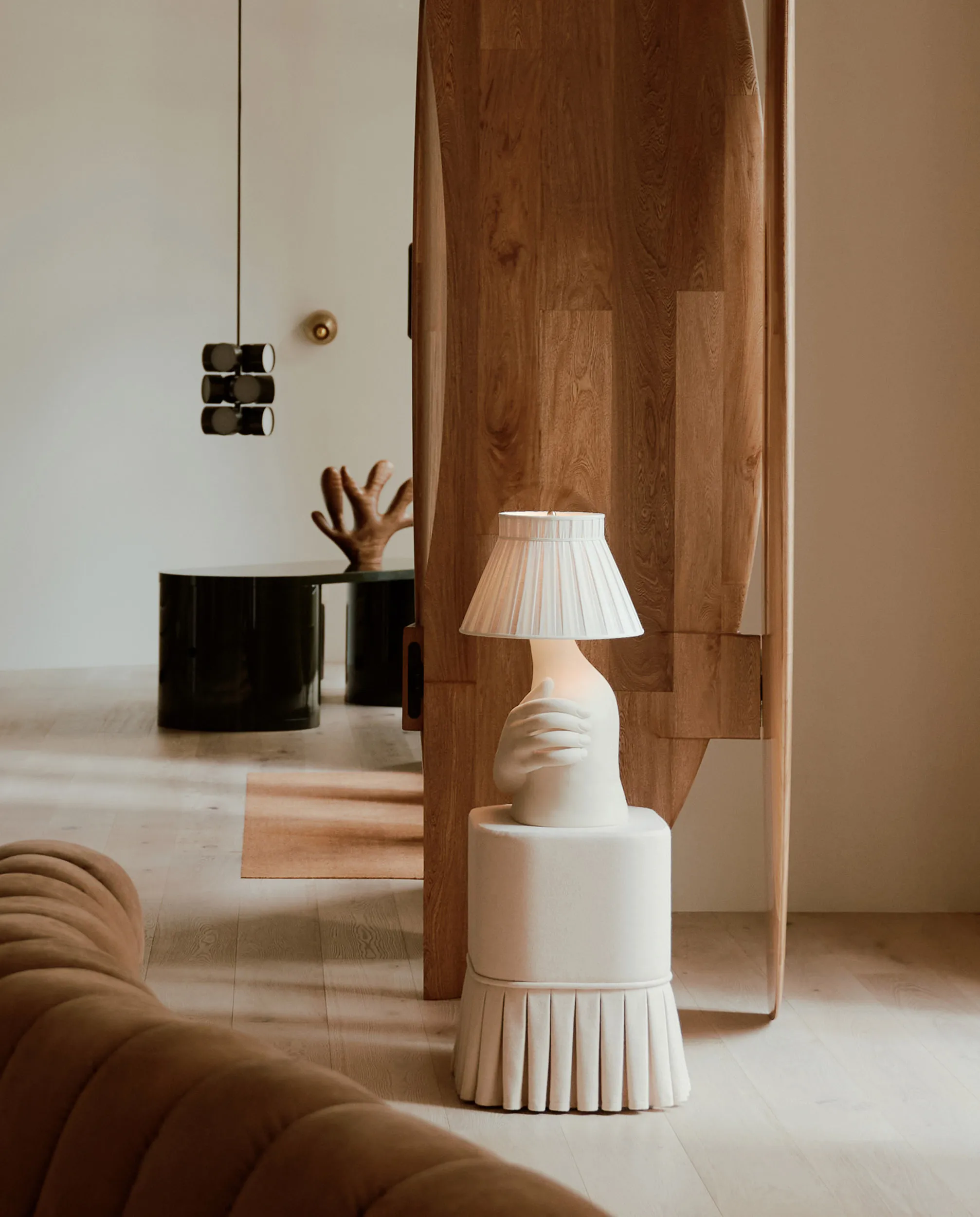 LS08E pendant by Luca Stefano, numbered edition – Pilla Sconce by Jan Garncarek, numbered edition – Ritual screen by Luis Arredondo, limited edition 25 – DS-600 Sofa by U. Berger, E. Peduzzi Riva, H. Ulrich & K. Vogt 1972 – Wood Sculpture & Lamp Sculpture from Nacho Polo & Robert Onuska private art collection – Claudia Comte, Fire Coral, 2019. Not for sale – Genesis Belanger, I Don’t Believe in Ghosts, 2022. Not for sale