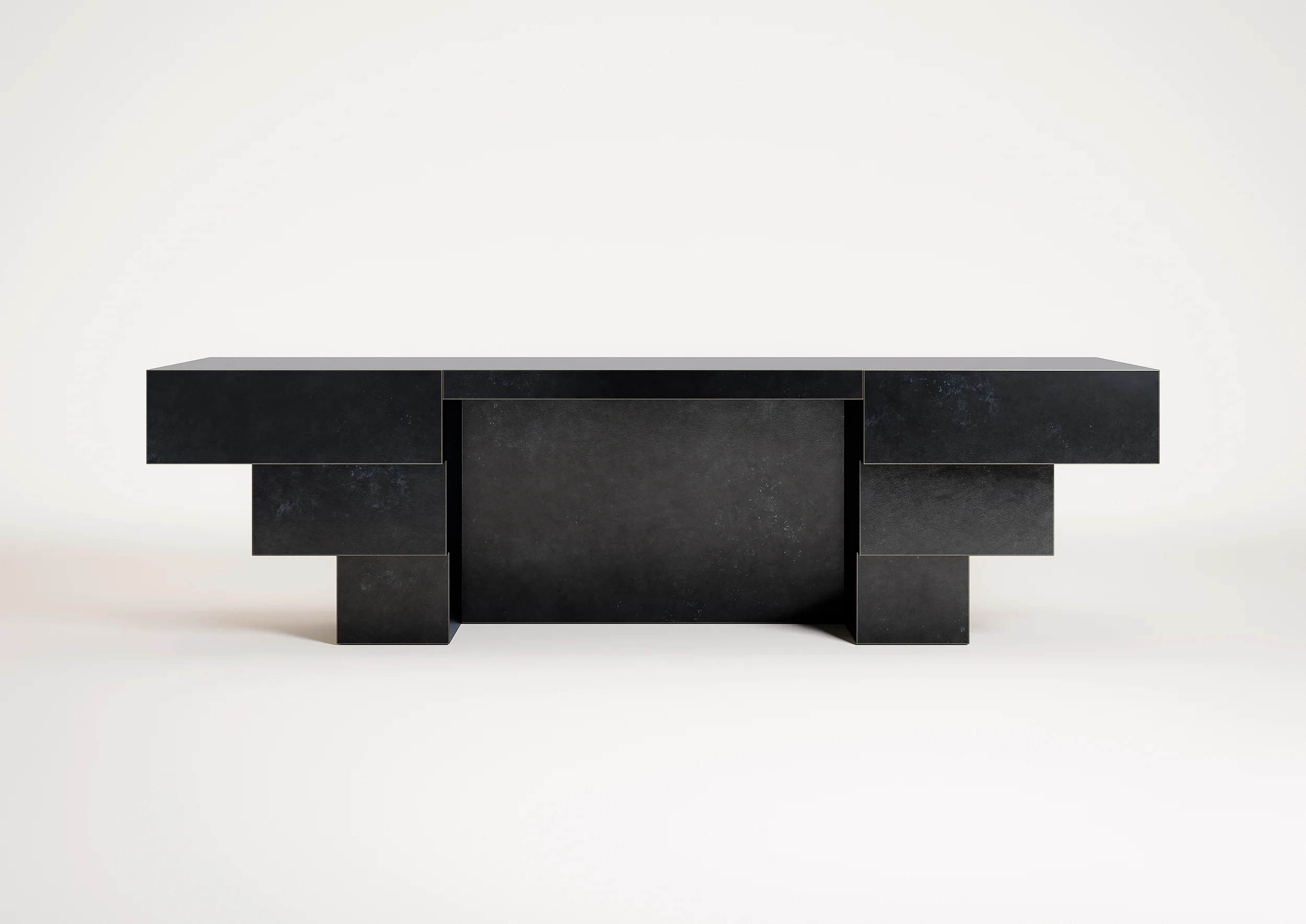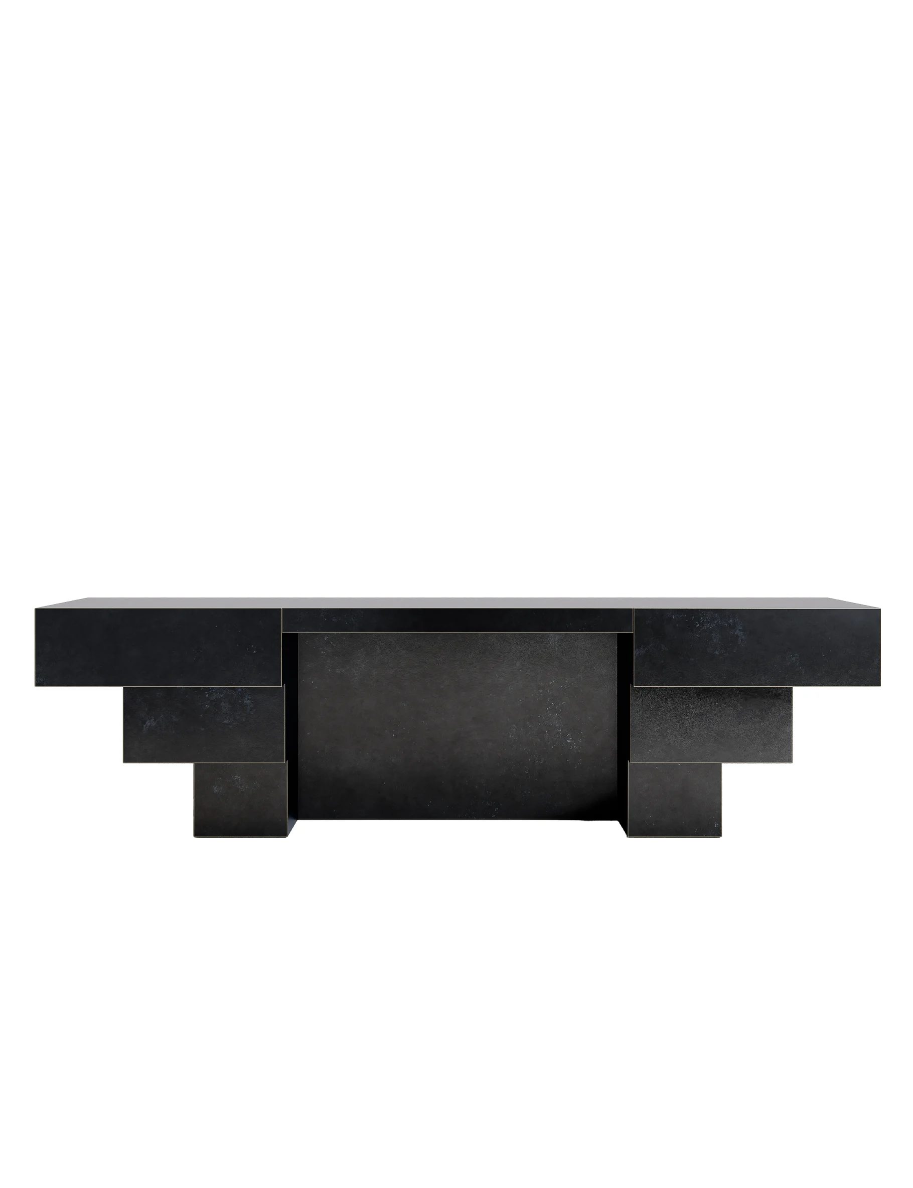 Material is central to the collection’s expressive power. Black bronze dominates, lending density, gravity, and a sense of permanence. Its matte surfaces absorb light rather than reflect it, intensifying the objects’ visual weight. Occasional incursions of contrasting materials introduce moments of permeability and tension, underscoring a dialogue between opacity and transparency, compression and release. Throughout, the artist’s hand remains present, grounding the works in physicality, sensuality, and reason