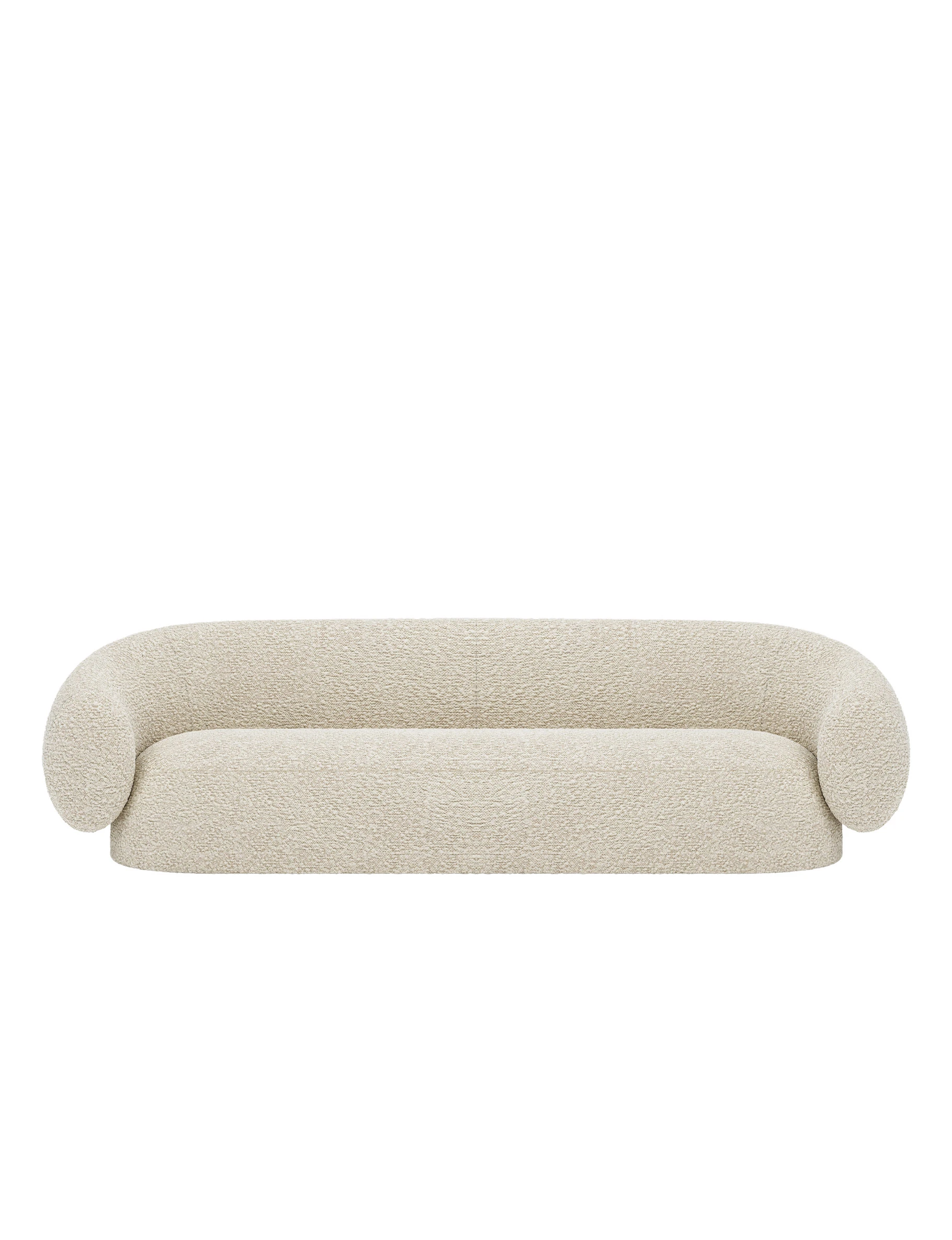 Clad in sumptuous bouclé wool, the surfaces invite touch. The fabric’s textured softness suggests warmth and intimacy, transforming the act of sitting into something sensorial and slow, inviting us to settle into a sanctuary that feels shaped by air