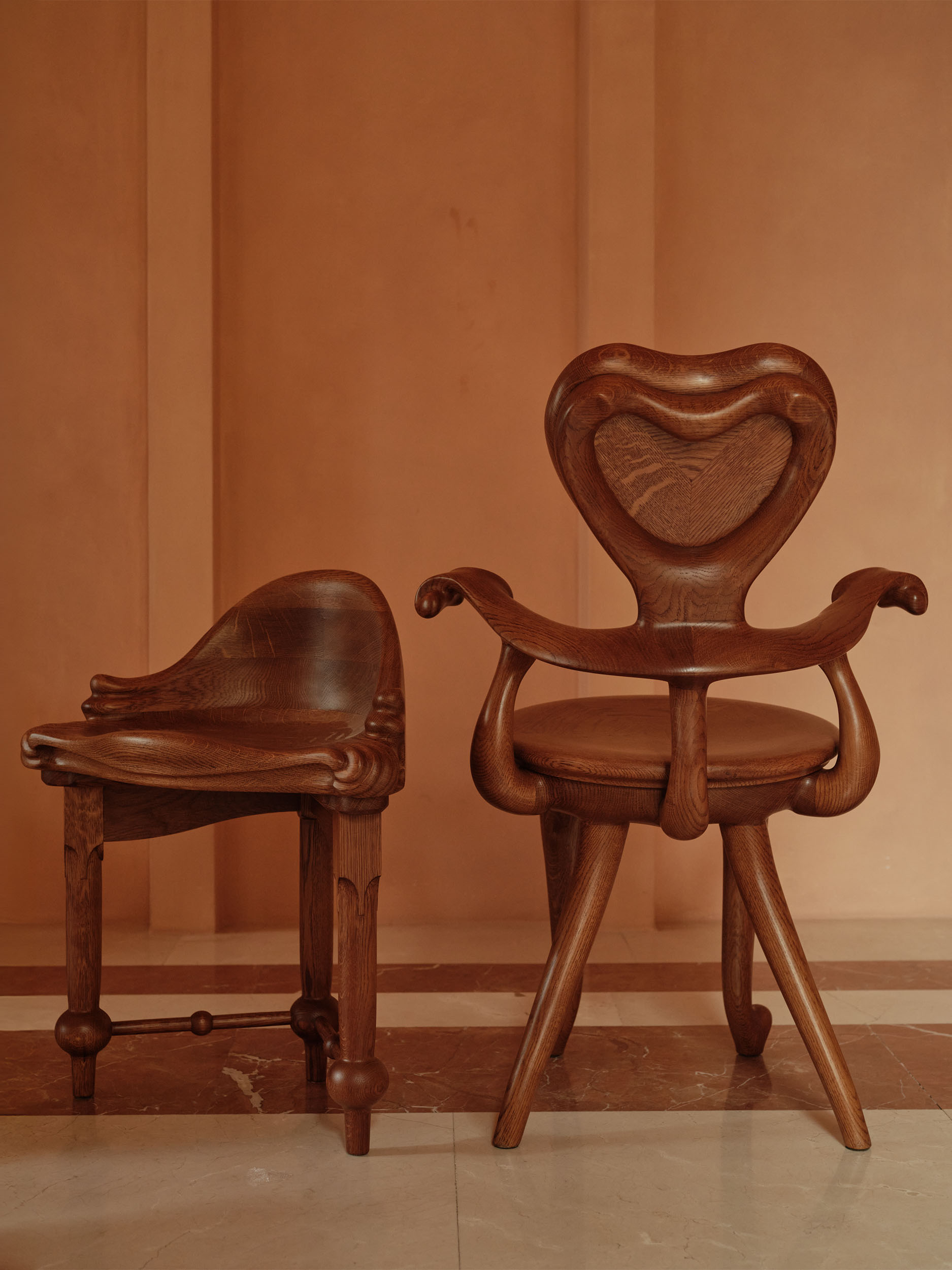 The dark mass of solid wood is carefully balanced by the stool’s proportions, creating a sense of visual lightness despite its material density. This interplay of weight and fluidity exemplifies Gaudí’s bold, organic, and quietly eccentric design language