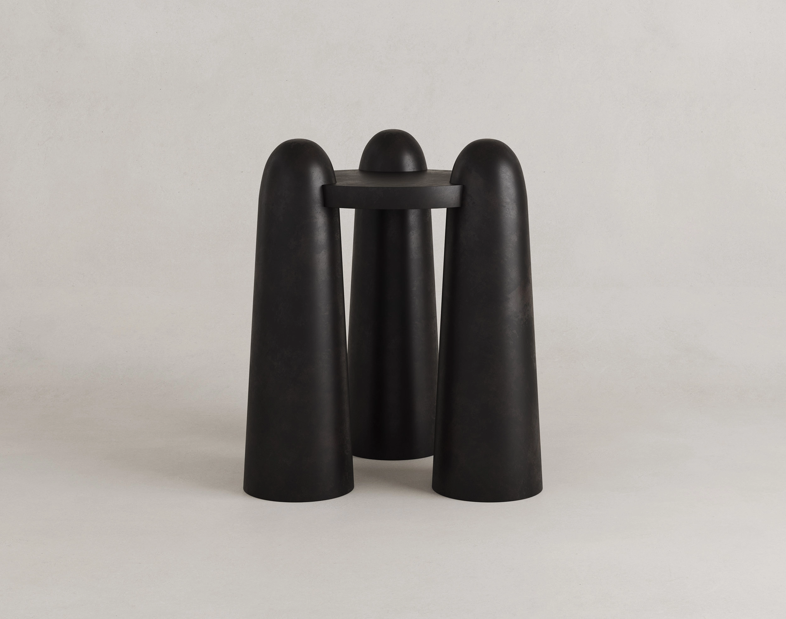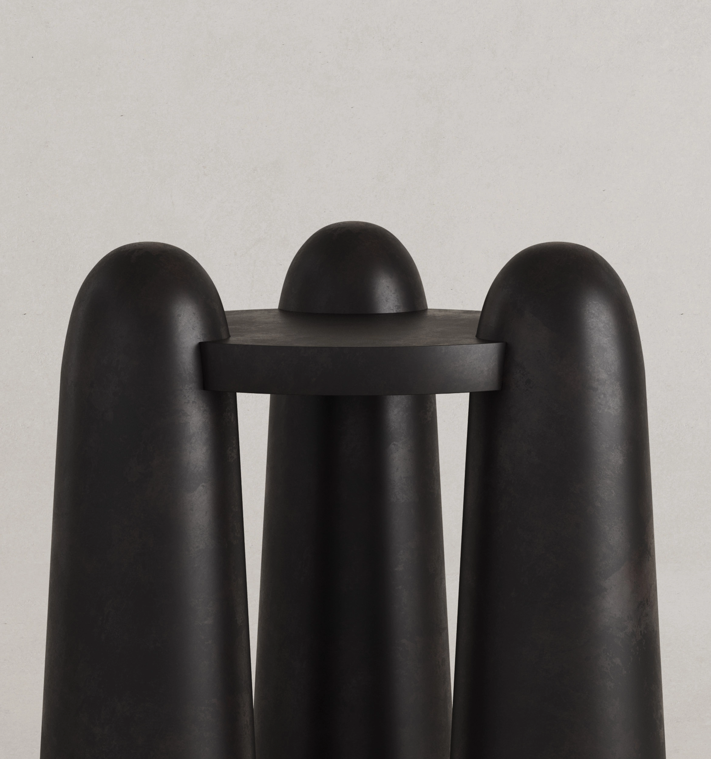 The Hilltop Series brings together two distinct series of work—FANG and KLYK—each an exploration of sculptural form, tactility, and presence. Conceived as variations on the theme of balance and elevation, the series reflects a tension between the archaic and the contemporary, the monumental and the intimate. Each work channels elemental forms from nature—stalactites, stalagmites, fangs, and tusks—while evoking echoes of ancient phallic symbolism. Their monolithic geometries assert a quiet force, at once brutal and contemplative. The polished apex of each form invites touch, transforming these objects into sensory experiences that connect present-day spectators to primordial structures. Massive yet restrained, they are objects of both tactility and meditation