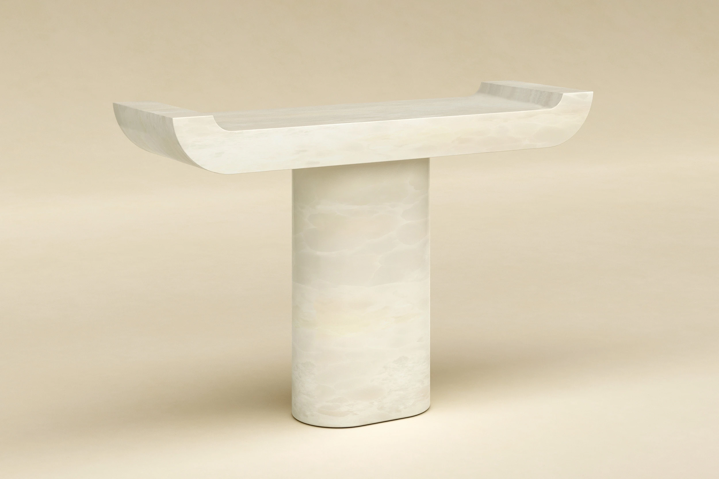 Each work is anchored by a sculptural top whose sweeping contours feel as though they were shaped by instinct rather than compass or calculation. These forms hover between brutality and grace, echoing the dual nature of their inspiration, at once protective and dangerous, beautiful and formidable. Clean, minimal silhouettes allow the animal presence to speak in the object’s posture rather than in decoration, as if the force of the natural world had been momentarily stilled in matter