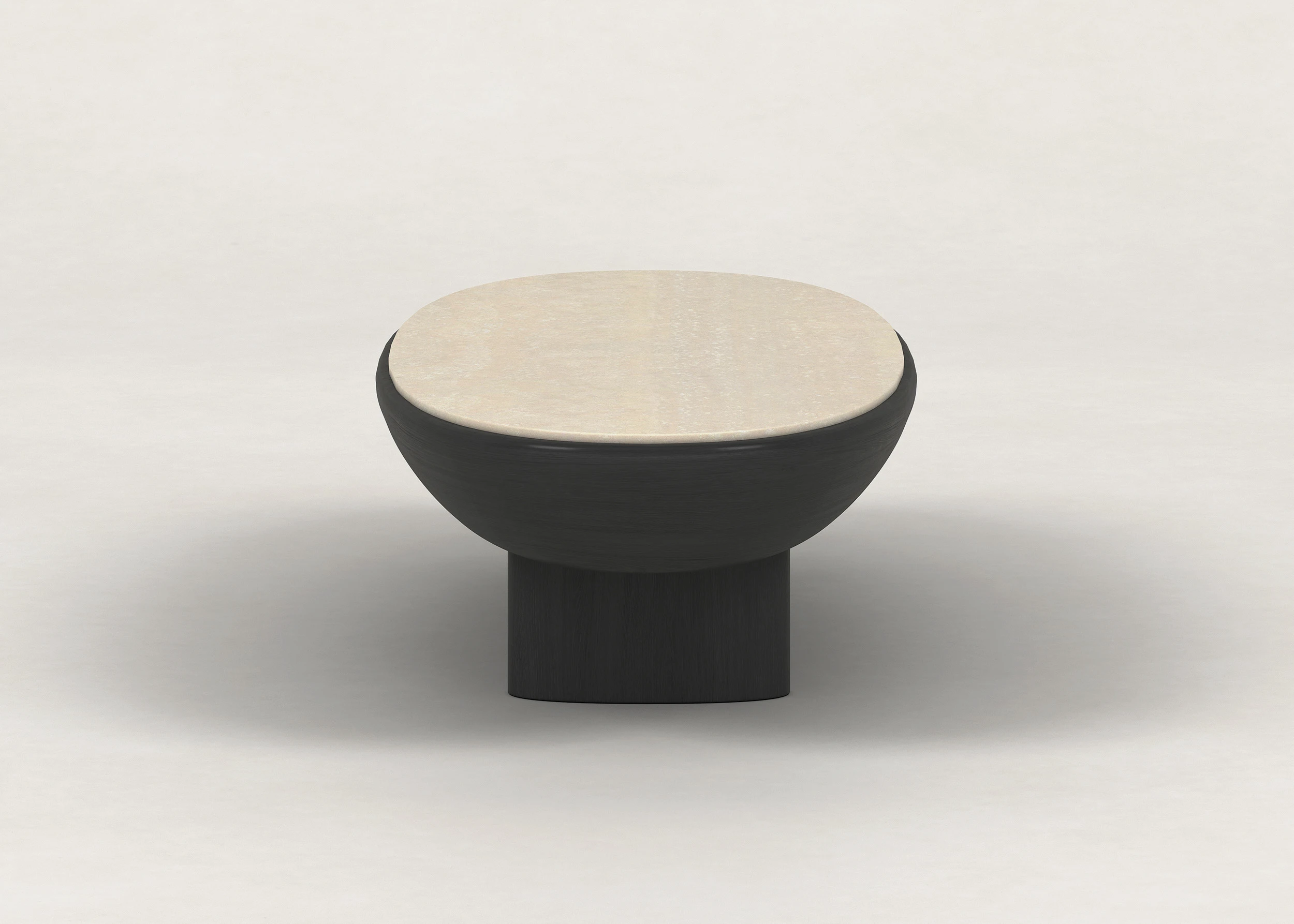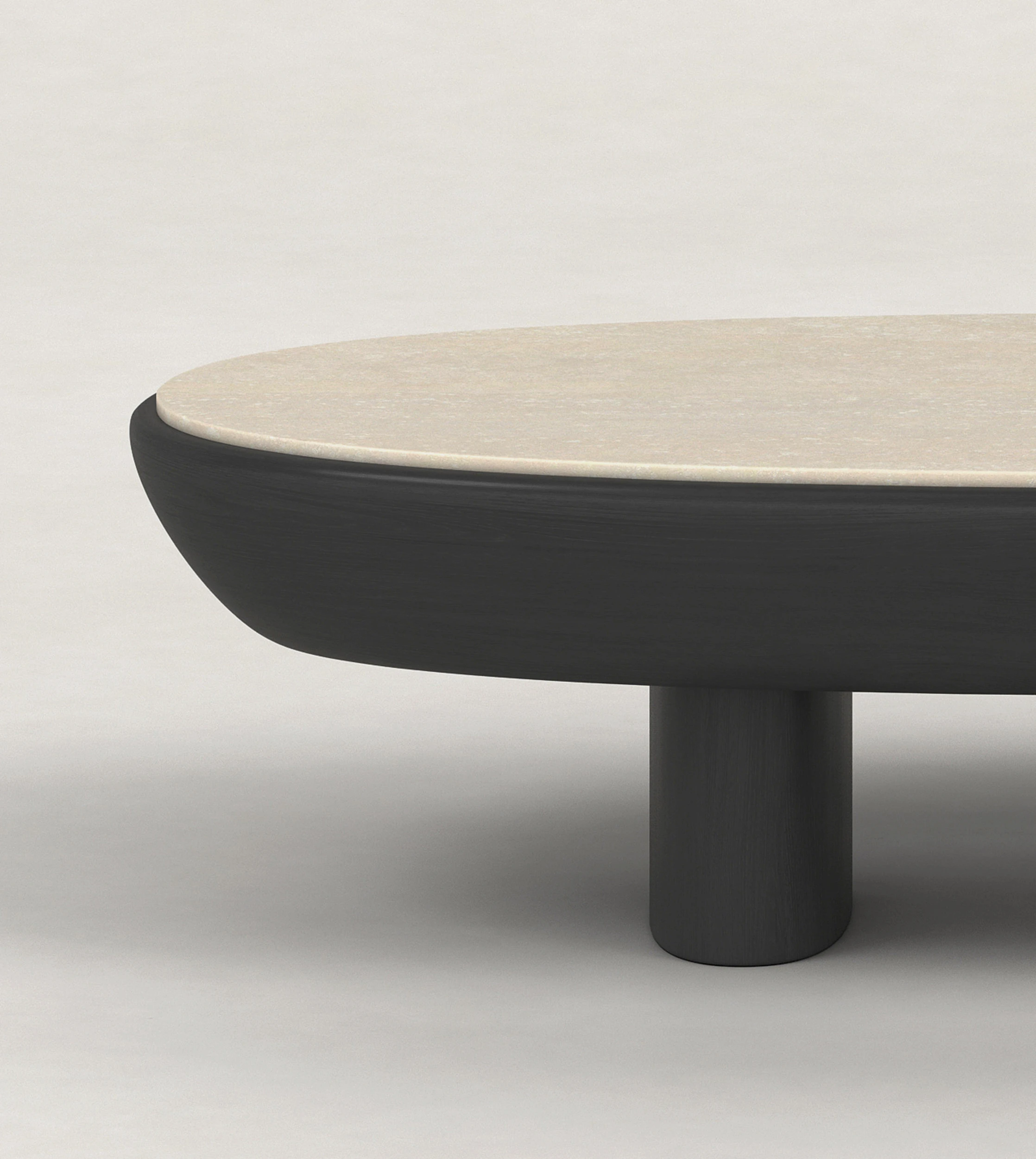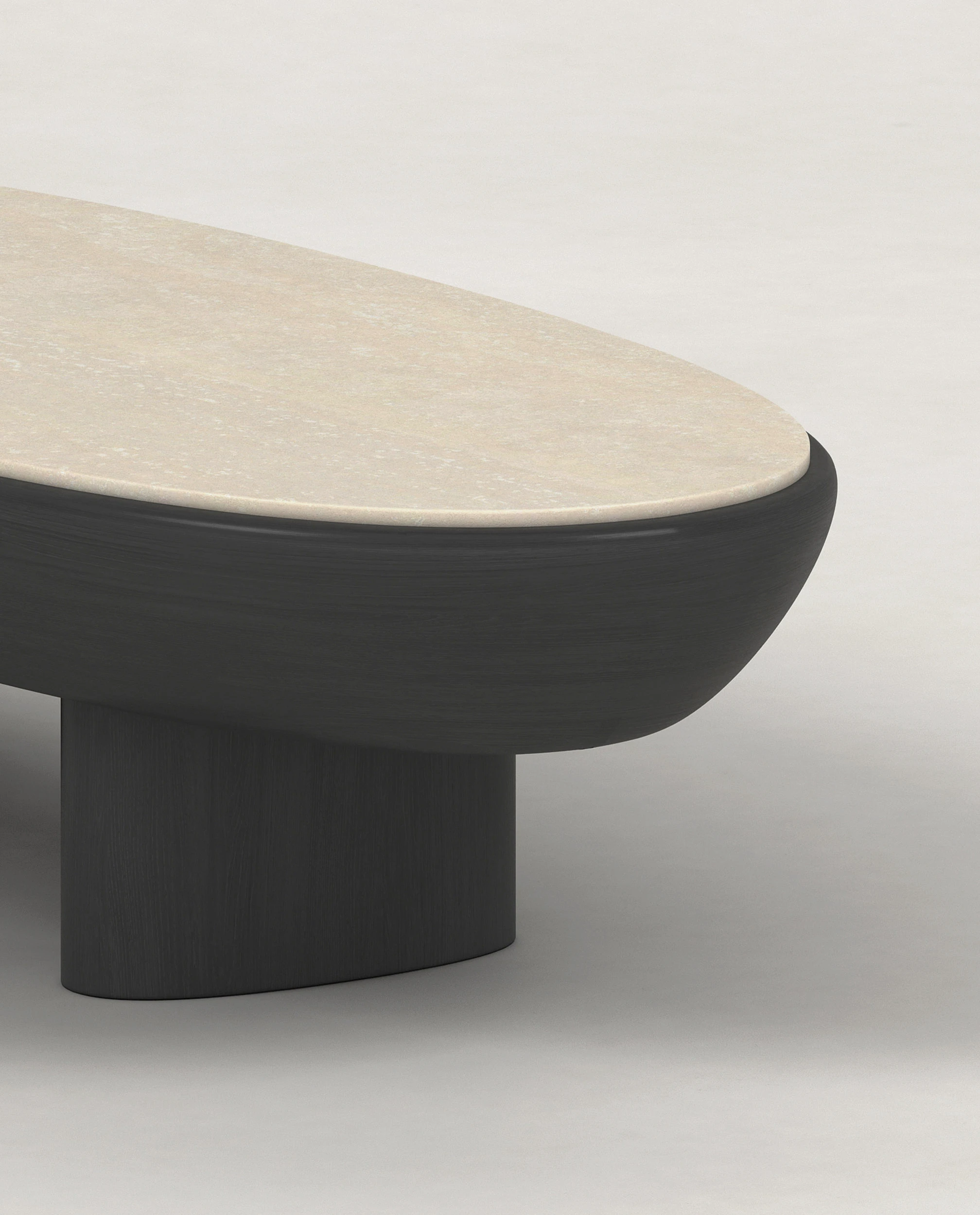 Each work is meticulously handcrafted in France by artisans who translate ancient methods into contemporary precision. Every curve is shaped to reveal the natural grain of the wood, every joint an expression of care and equilibrium. The stone, cut and polished by hand, lends permanence to the collection’s otherwise fluid sensibility
