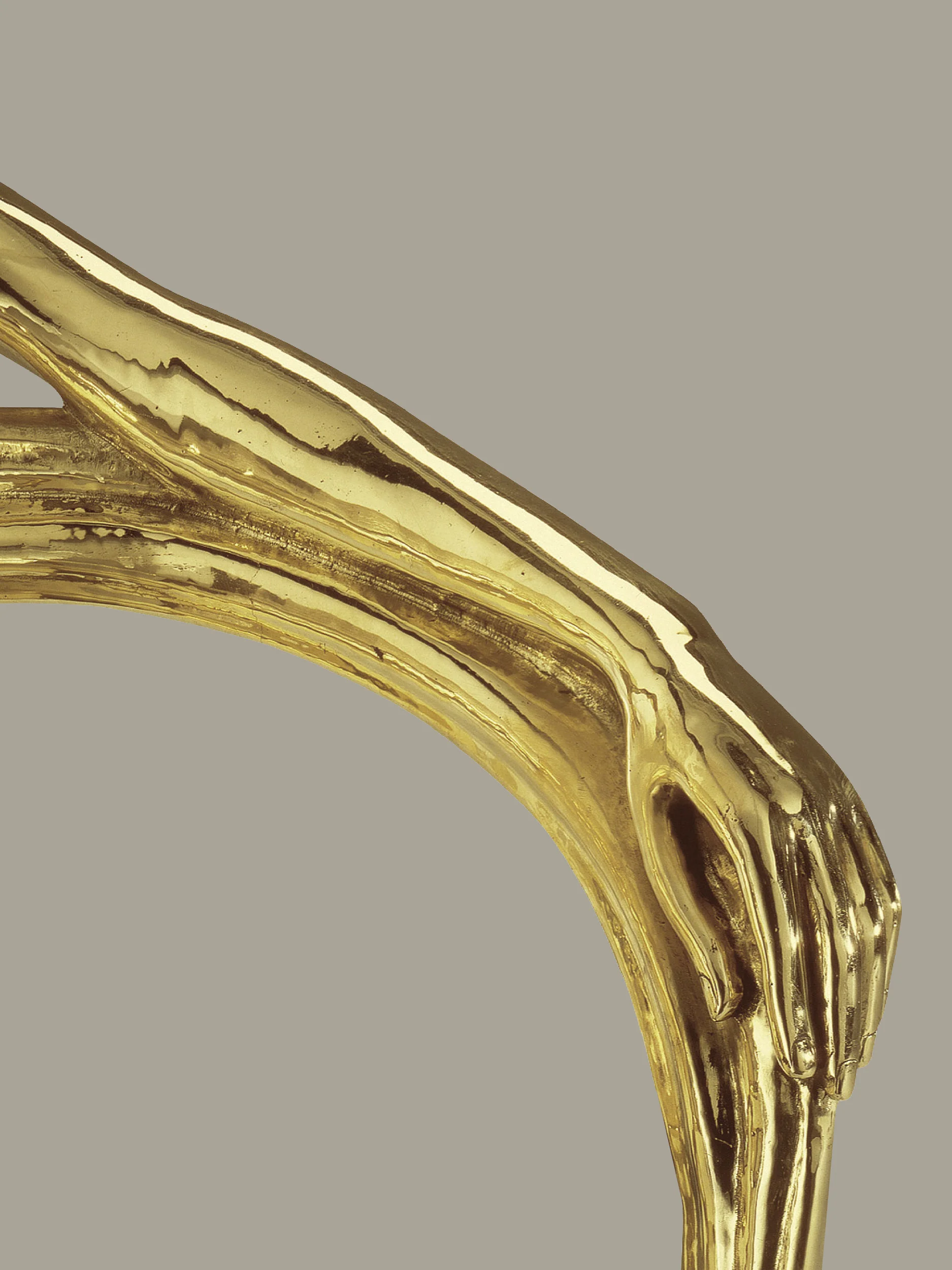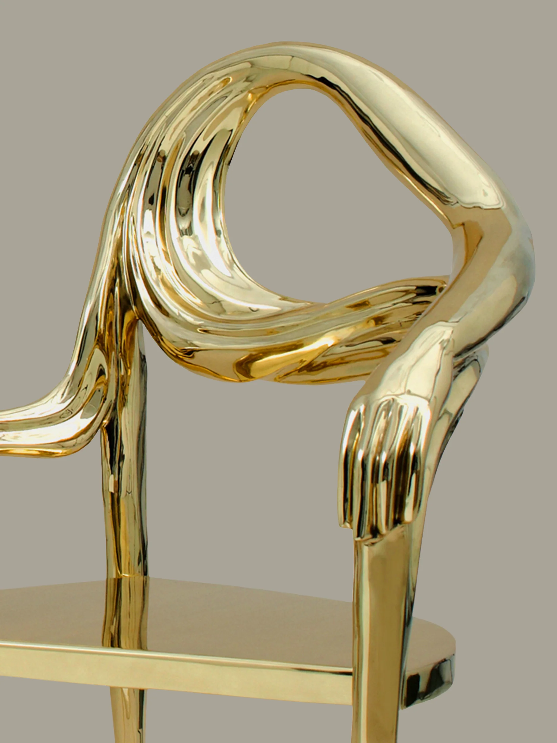 The LEDA Sculptural chair translates the dense, sinuous lines of Dalí’s Surrealist universe into a fully realized sculptural seat. Executed in polished brass, the chair envelops the sitter within a continuous, curving form that is at once protective and expressive