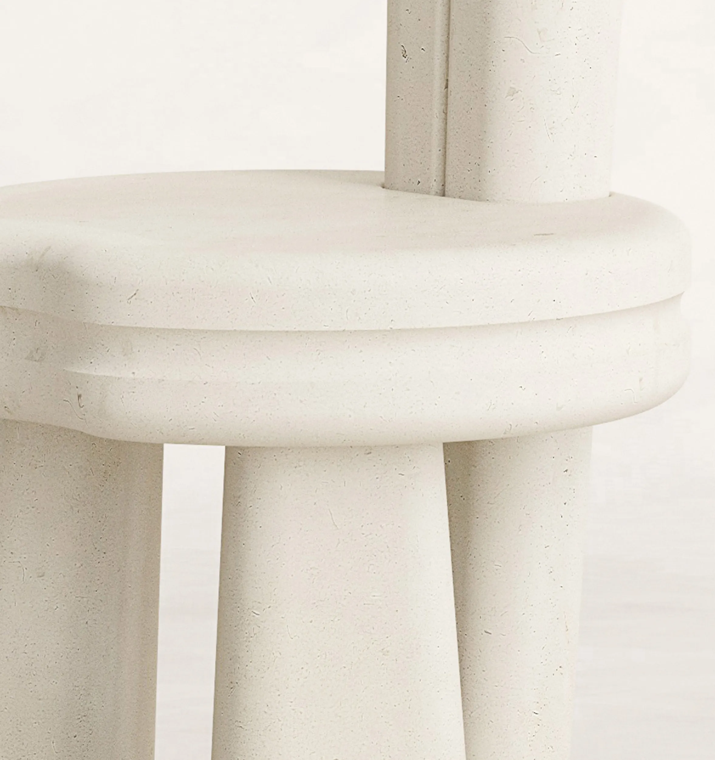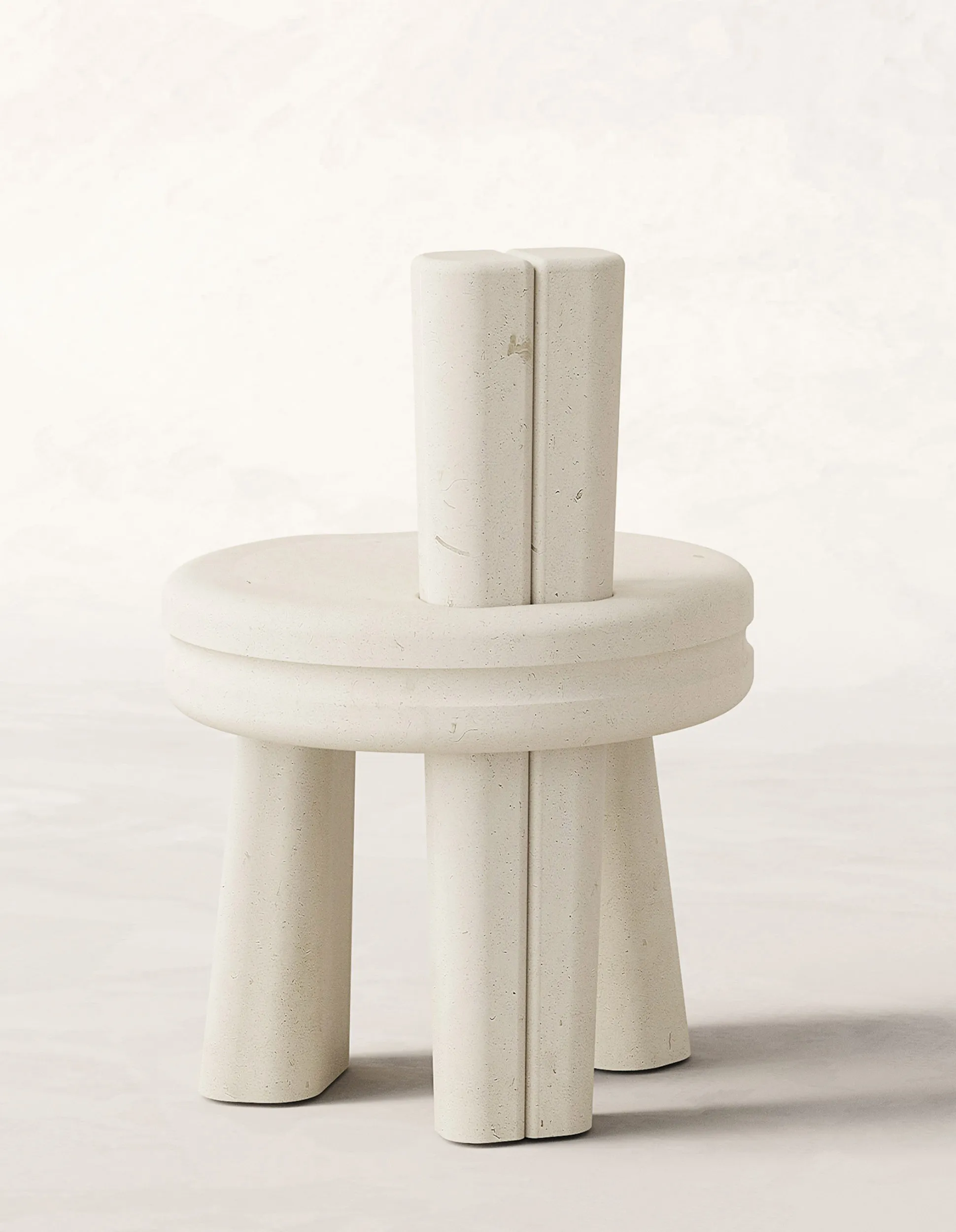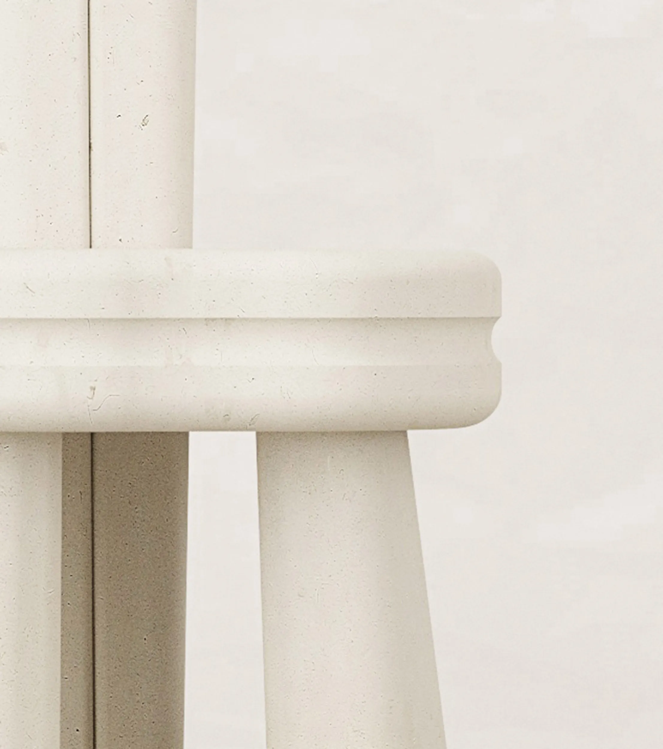 Across the collection, columns tilt and shift off axis, subtly offset to create a quiet tension. Negative space becomes an active component of the composition, opening passages of air and light between dense elements of stone. The silhouettes feel both grounded and fluid, with volumes that are generous yet precise. Edges move between softness and definition, while tabletops explore a nuanced dialogue between curved and linear contours that lend the works an organic presence