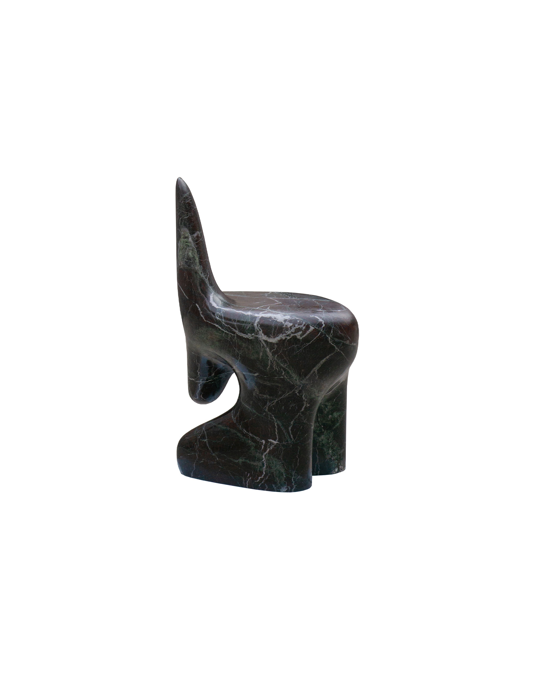 The Morphe Chair transforms the rigidity of stone into a fluid and enveloping form. Its design balances weight and lightness, and seems to defy gravity. A functional sculpture, the cold texture of marble and its unique veining invite touch, while its organic silhouette suggests movement. Here, the material comes to life in a dialogue between solidity and softness