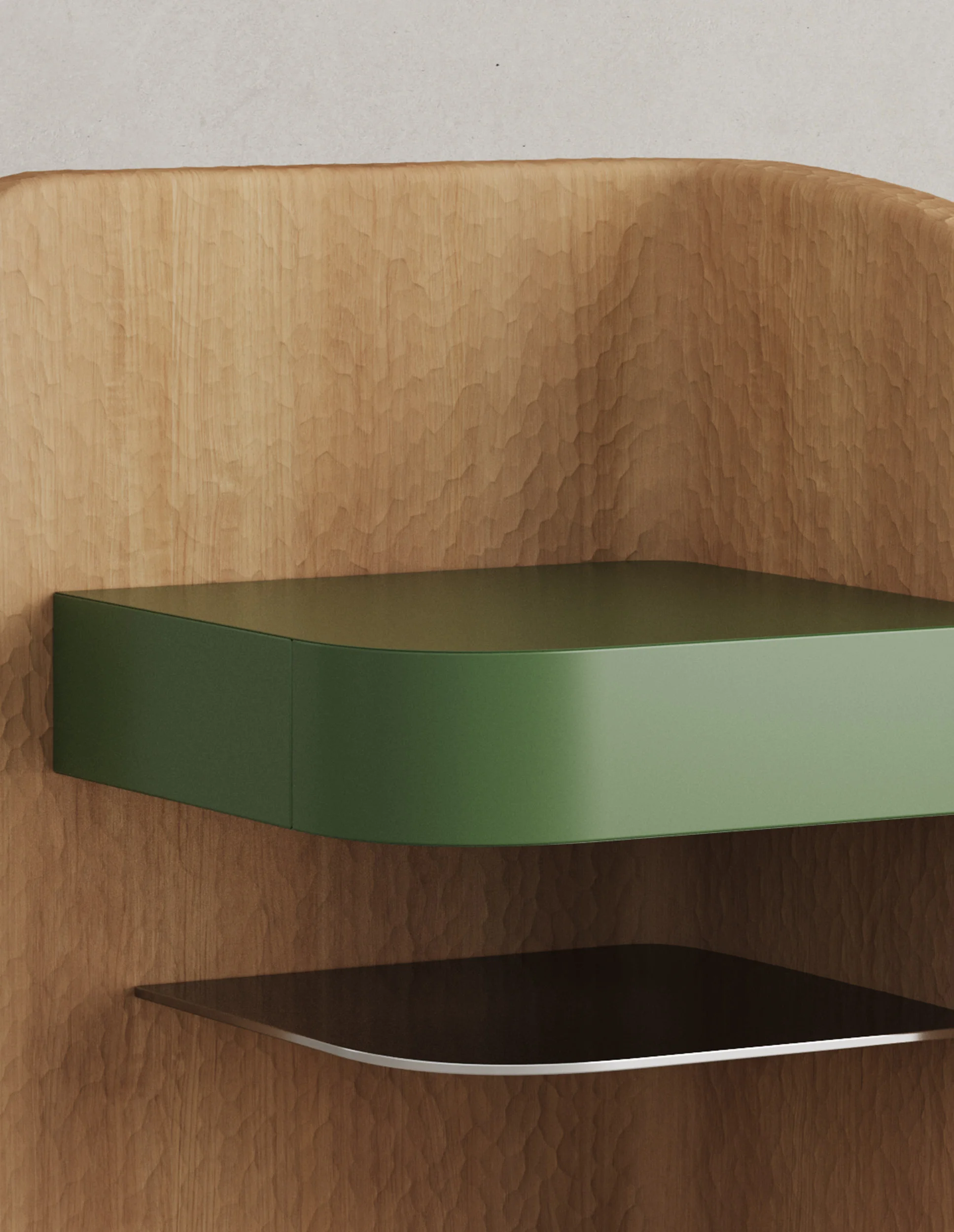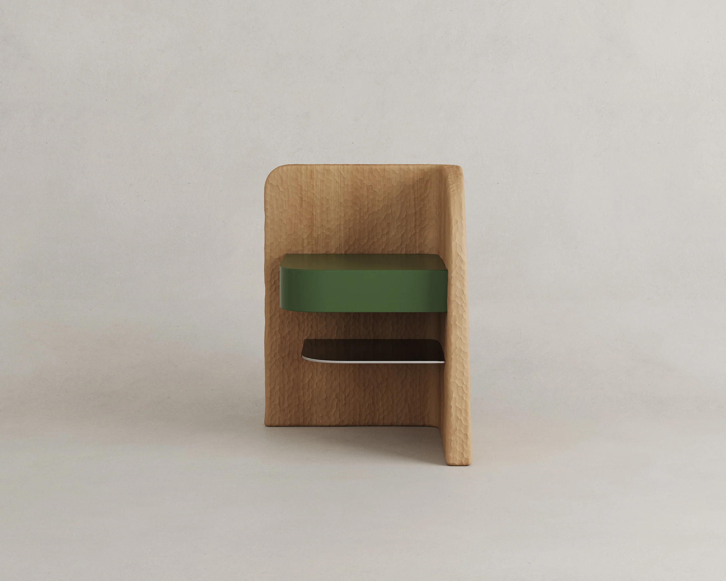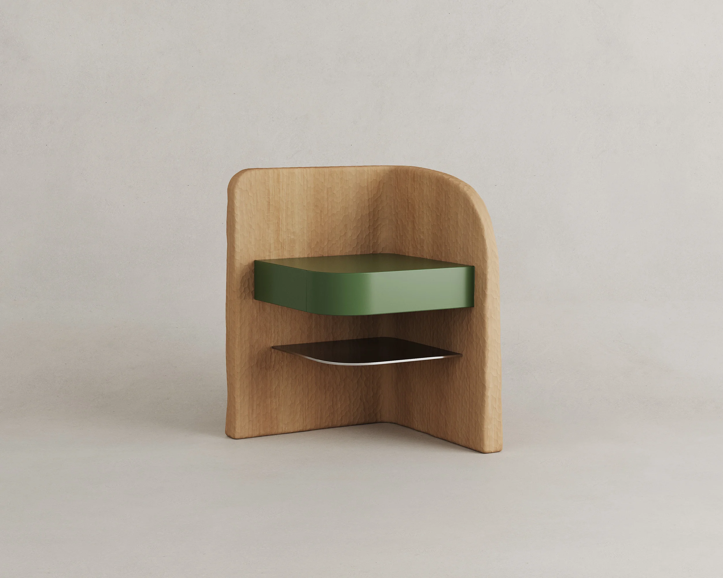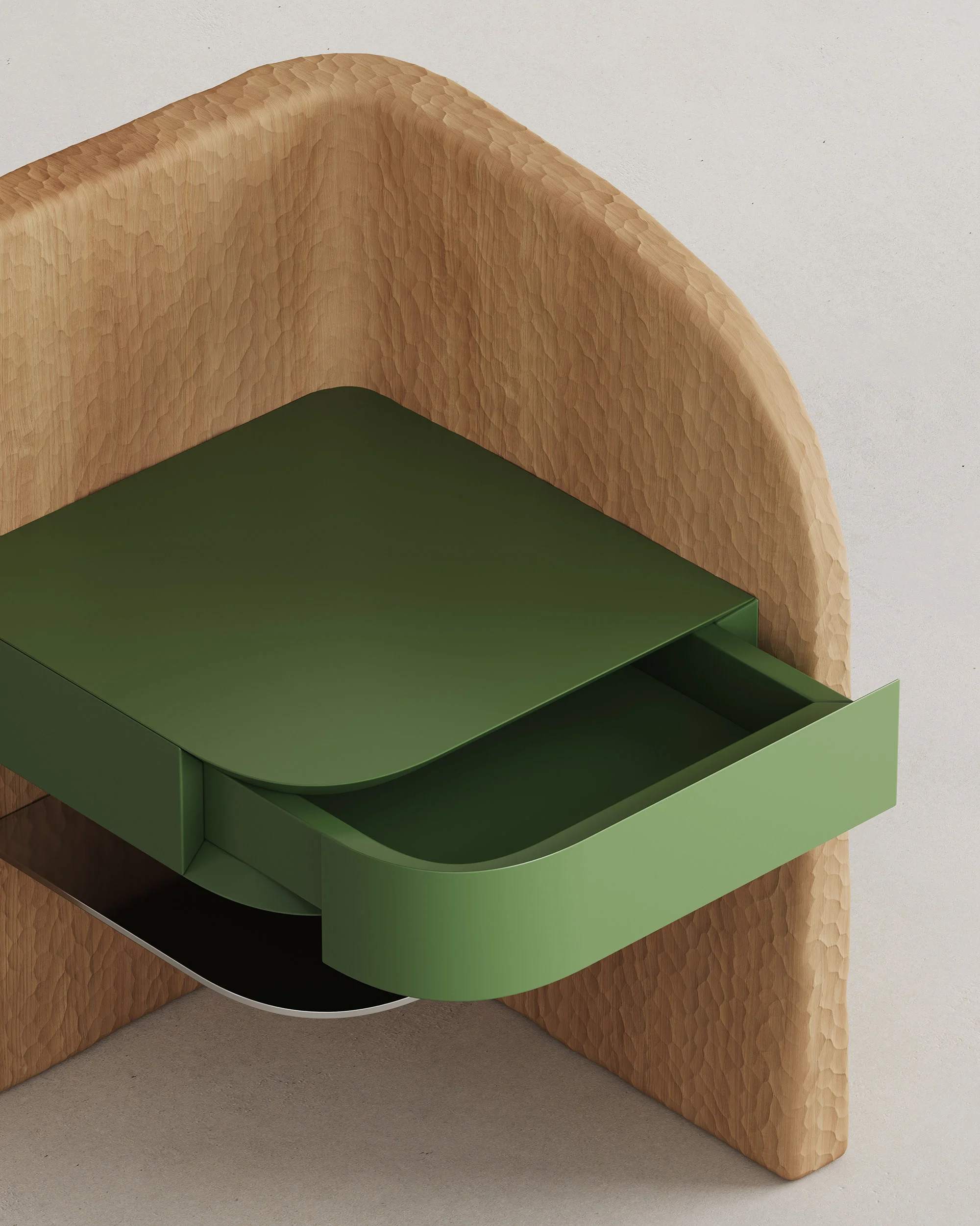 The ONIRIC bedside table a exists at the threshold between the Dreams and the Reality. Its form is at once familiar and estranged, occupying a liminal territory where function and imagination converge. With its capacity to hold both the ephemeral — dreams, secrets, twilight thoughts — and the material — books, treasures, nocturnal essentials — it becomes a silent guardian of our most intimate rituals. As such, ONIRIC resists classification: it is a paradoxical object, whimsical yet grounded, pragmatic yet speculative. In the illuminated version, a soft, diffused glow activates its presence, heightening its role as both keeper of objects and emissary of reveries. More than a work of furniture, ONIRIC is a sculptural totem of design’s capacity to balance utility with the poetic force of the subconscious