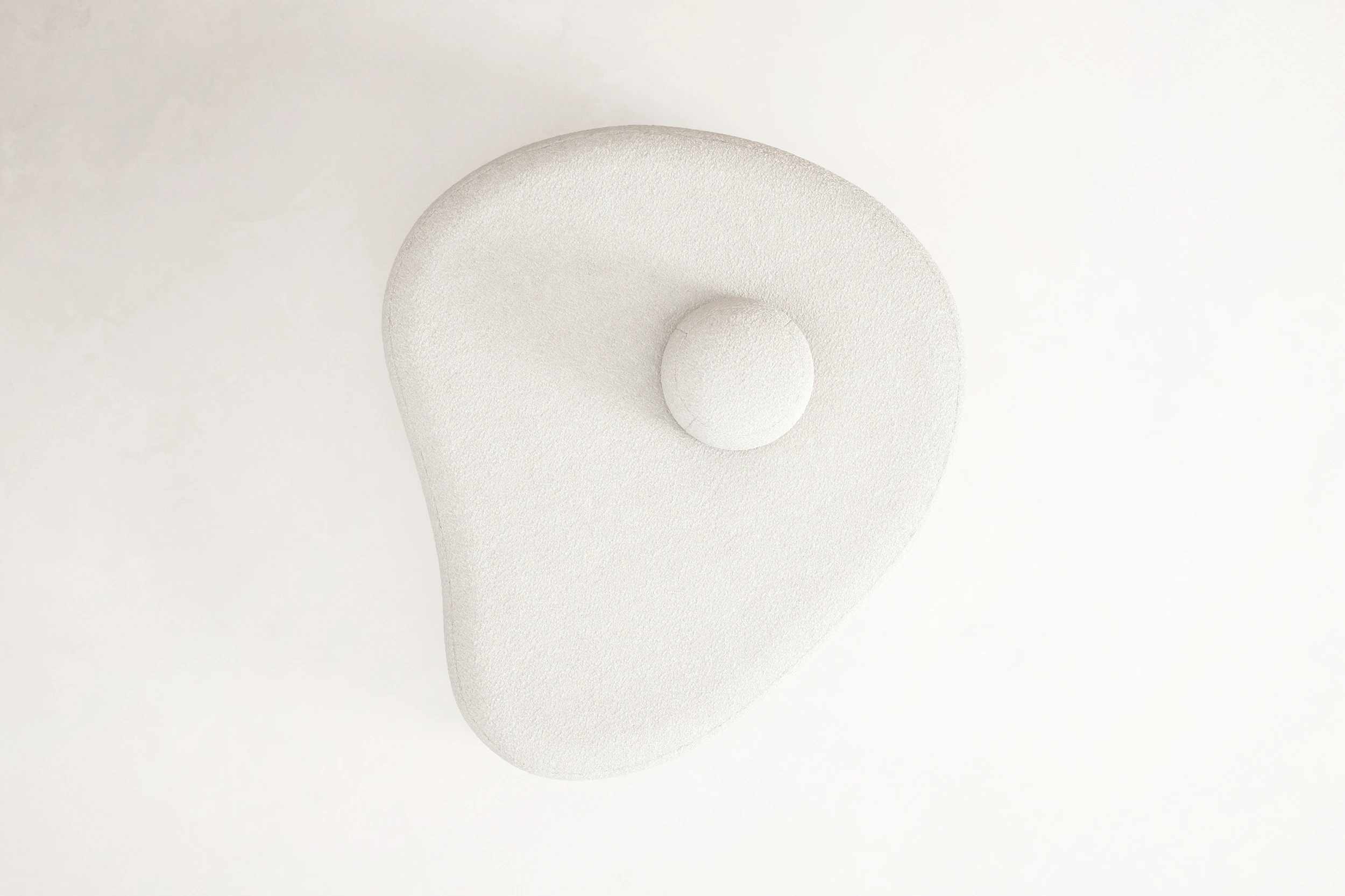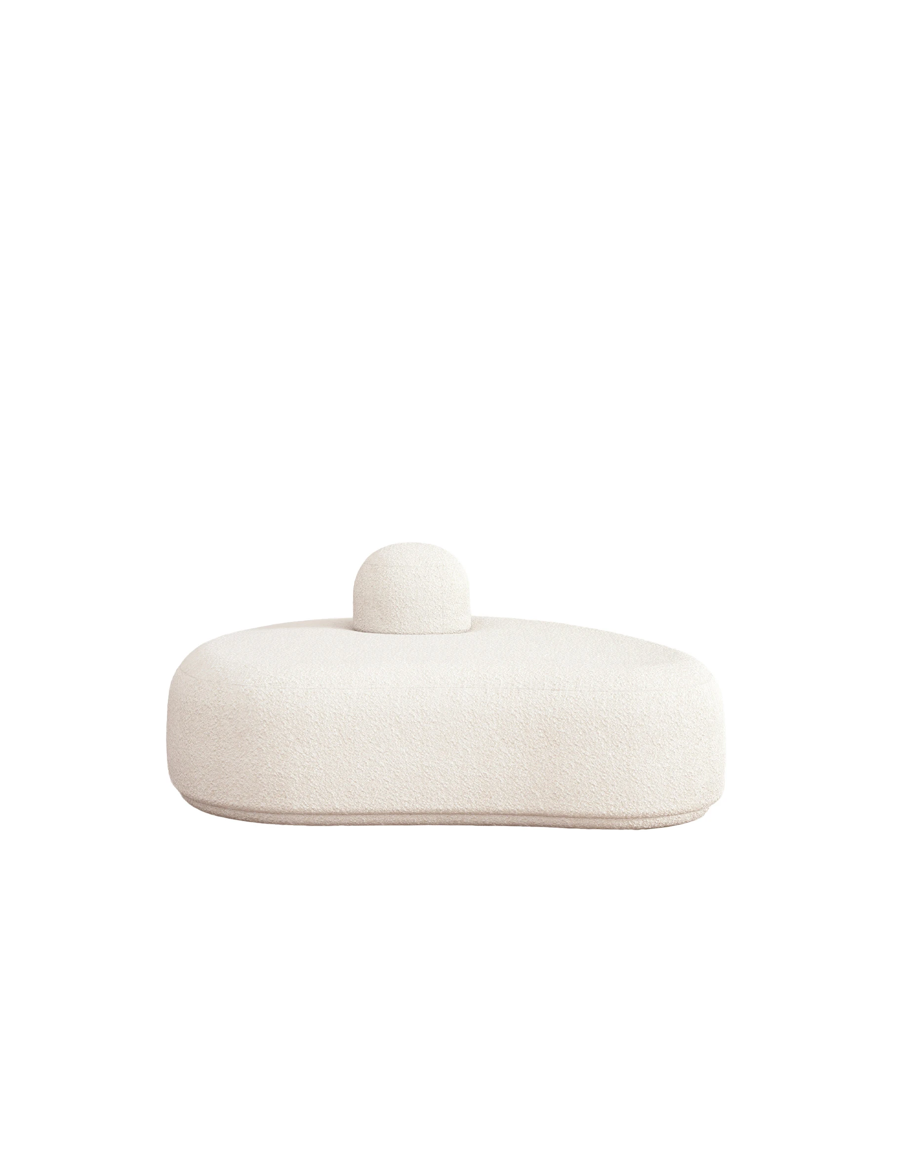 Rounded silhouettes, generous proportions, and tactile surfaces create an immediate sense of familiarity, as though these forms had always been nearby. The seating appears gently shaped by hand, recalling the reassuring presence of plush companions, quiet, still, yet alive with an inner world. Upholstered in bouclé fabric by Dedar, the surfaces carry the warmth of an ancestral touch, something felt before it is fully understood