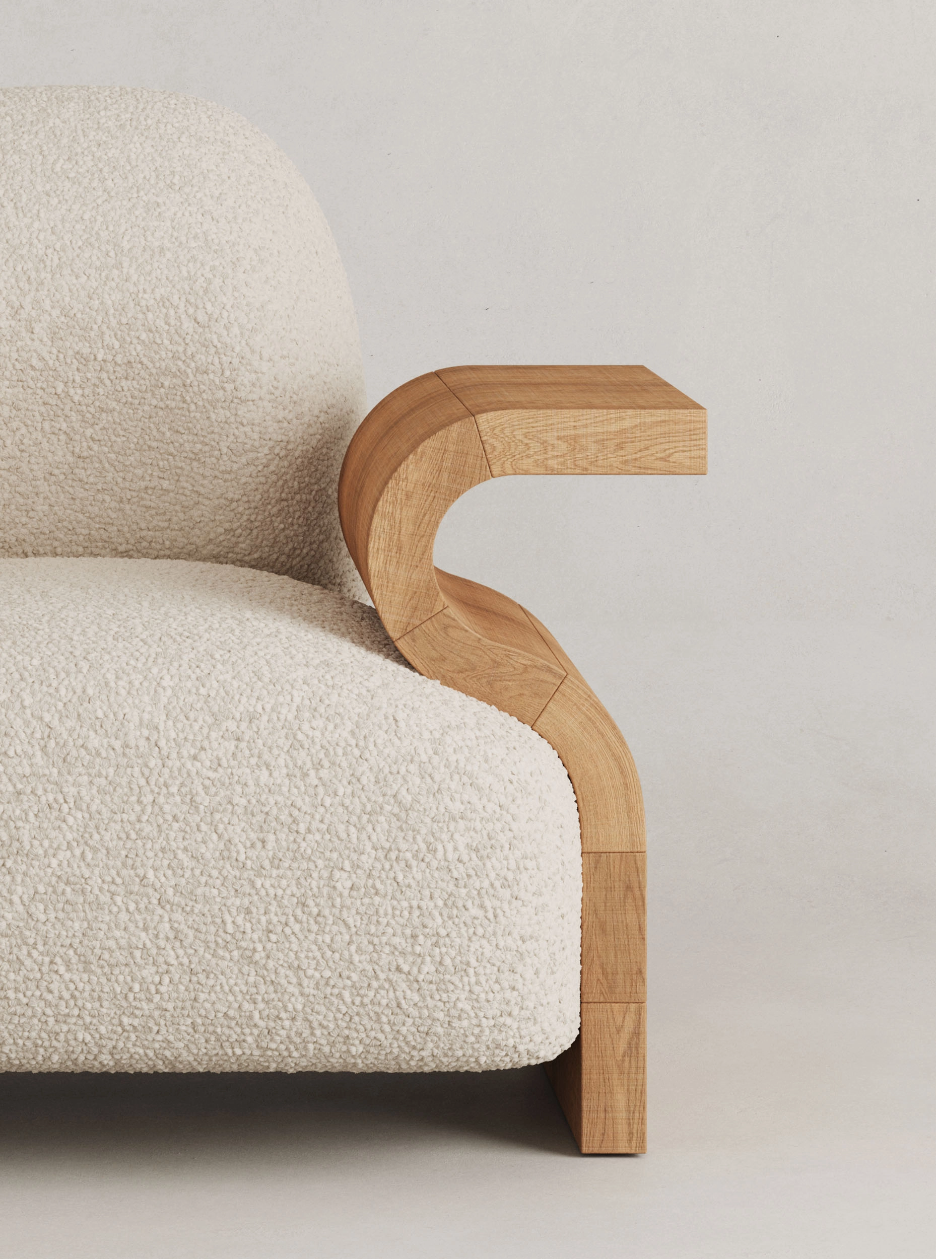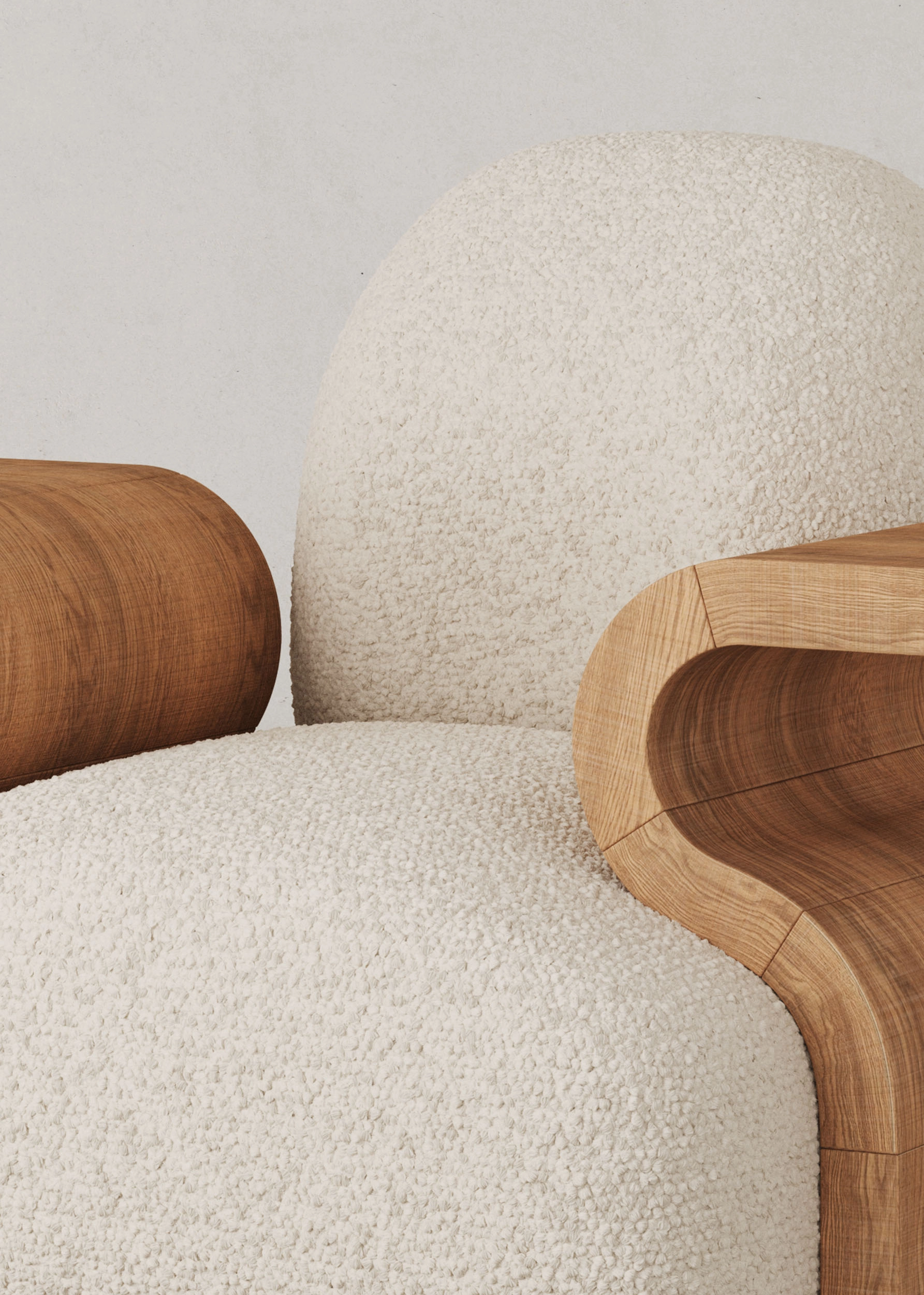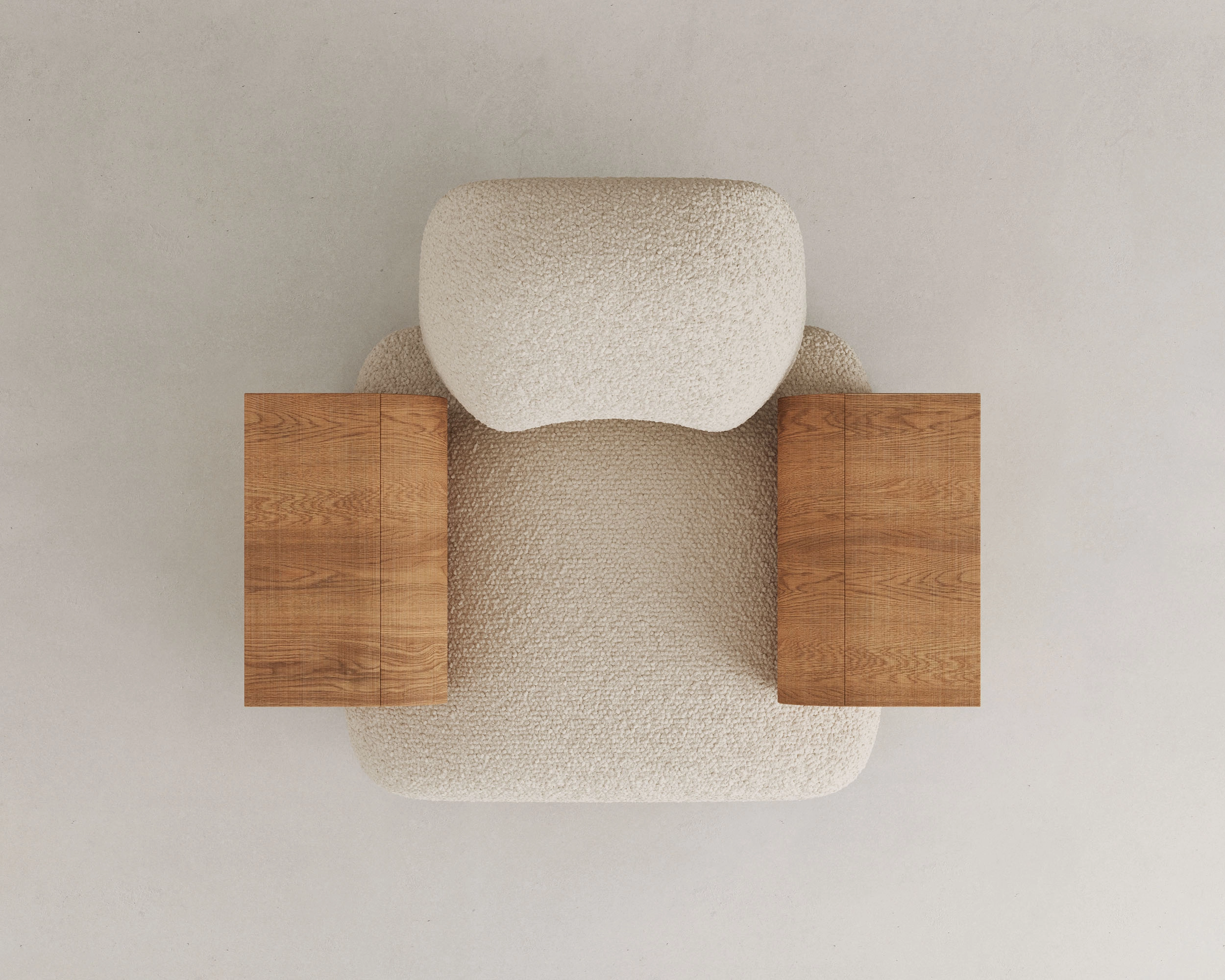 A tribute to paternal presence, the PAPA Armchair explores the duality of strength and tenderness. Solid oak elements convey endurance and wisdom, while generous upholstery evokes softness and embrace. In uniting these materials, the chair becomes a meditation on the archetype of fatherhood—protector, guide, and comforter. More than functional seating, it resonates as a monument to memory and relationship