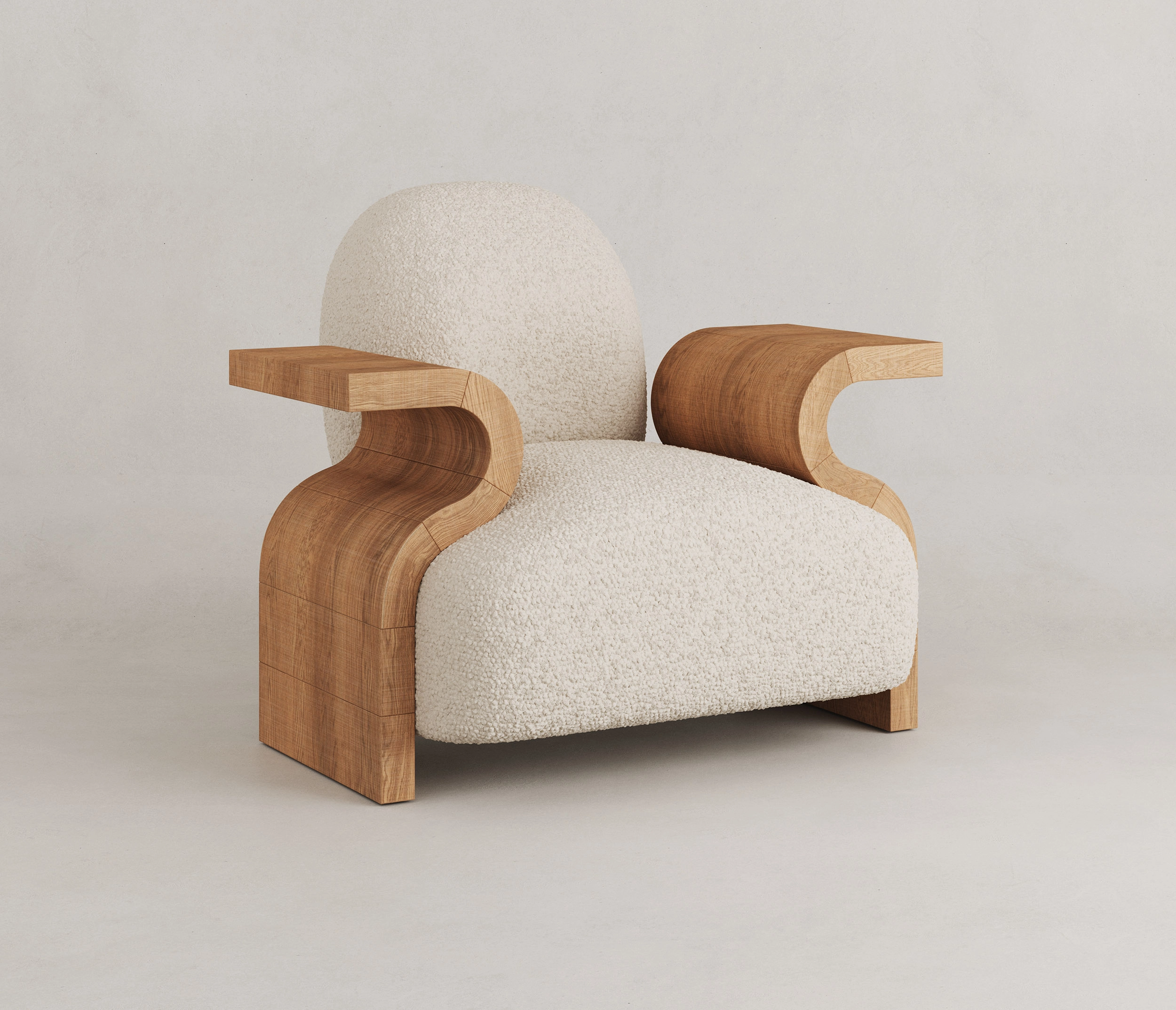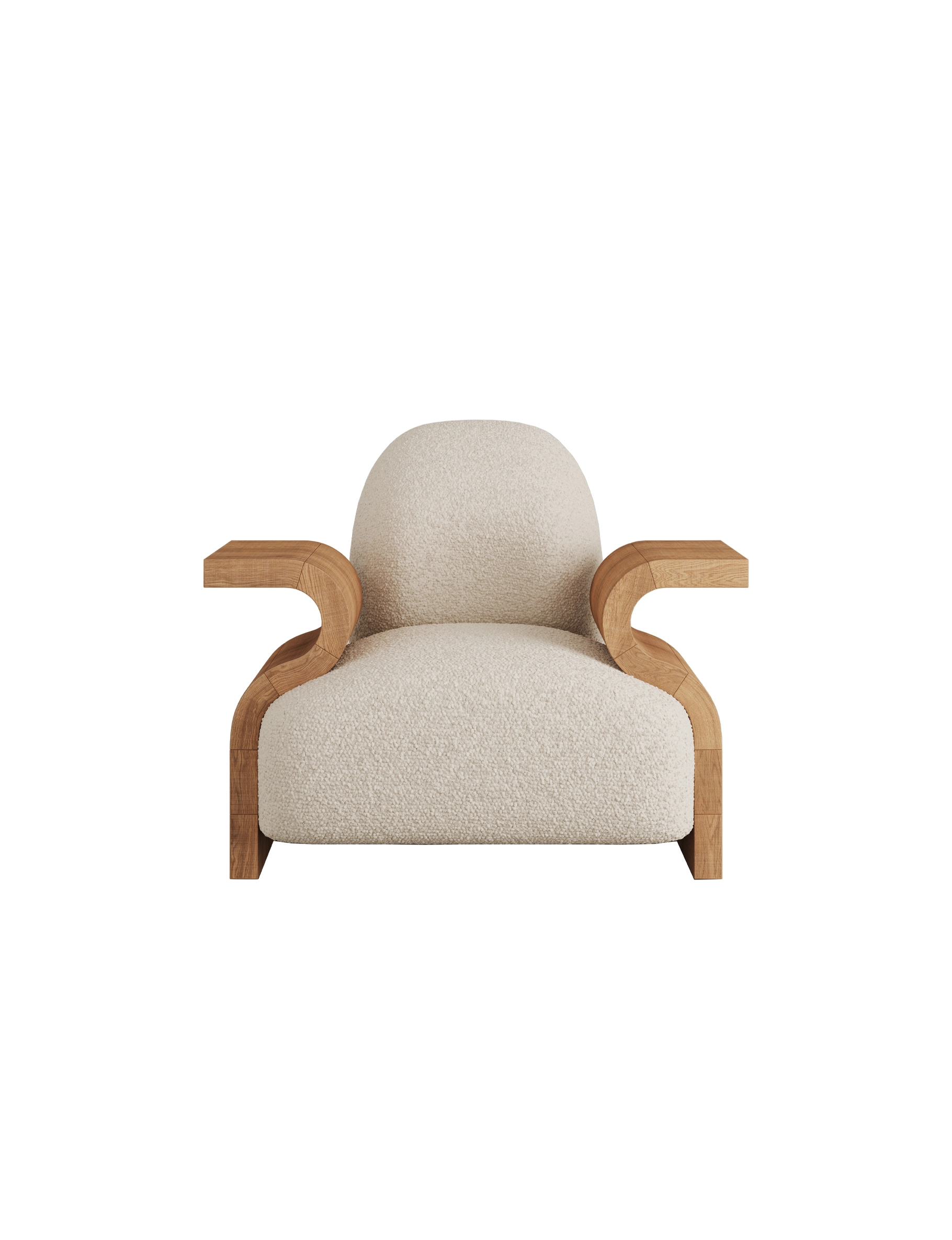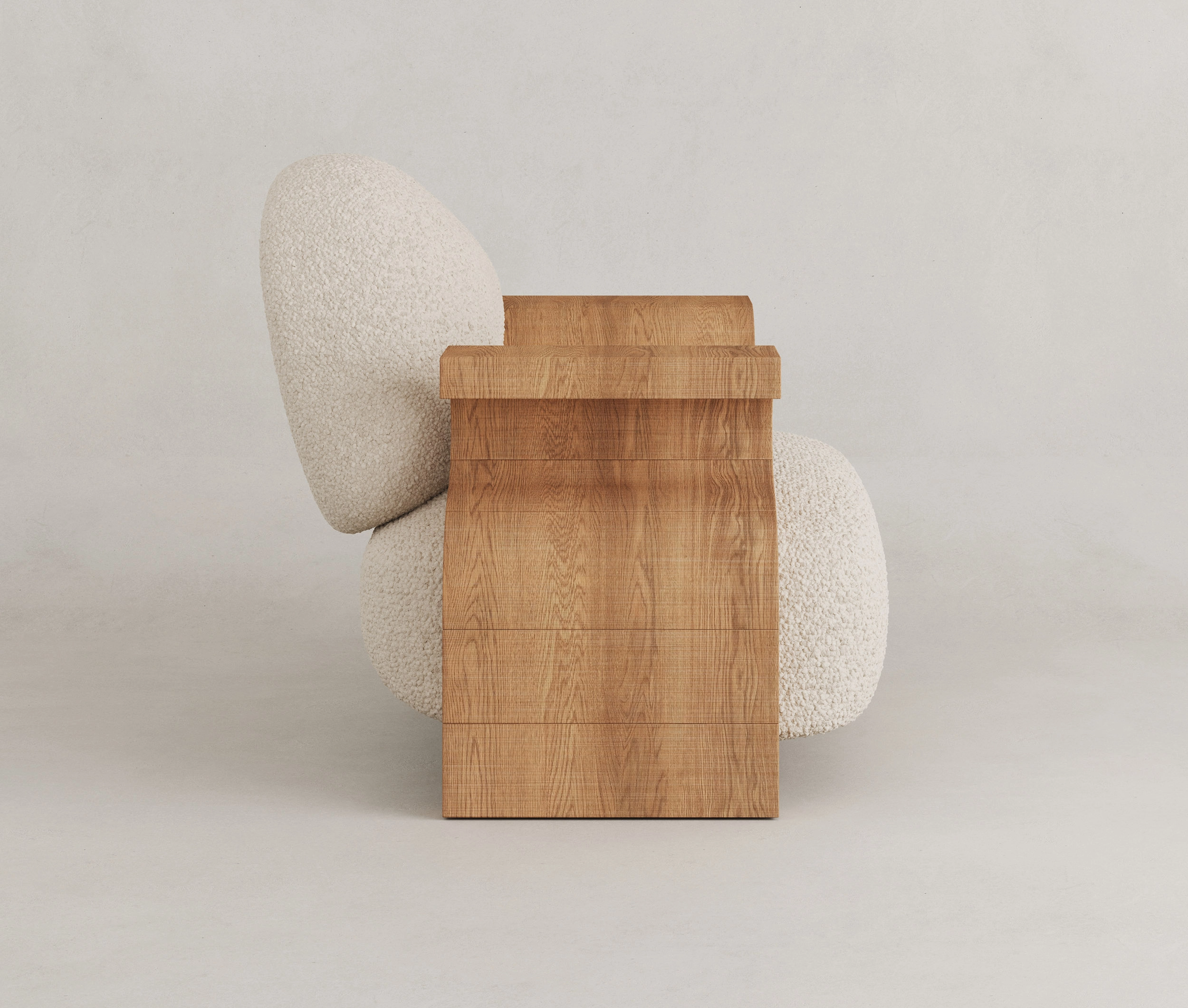 A tribute to paternal presence, the PAPA Armchair explores the duality of strength and tenderness. Solid oak elements convey endurance and wisdom, while generous upholstery evokes softness and embrace. In uniting these materials, the chair becomes a meditation on the archetype of fatherhood—protector, guide, and comforter. More than functional seating, it resonates as a monument to memory and relationship