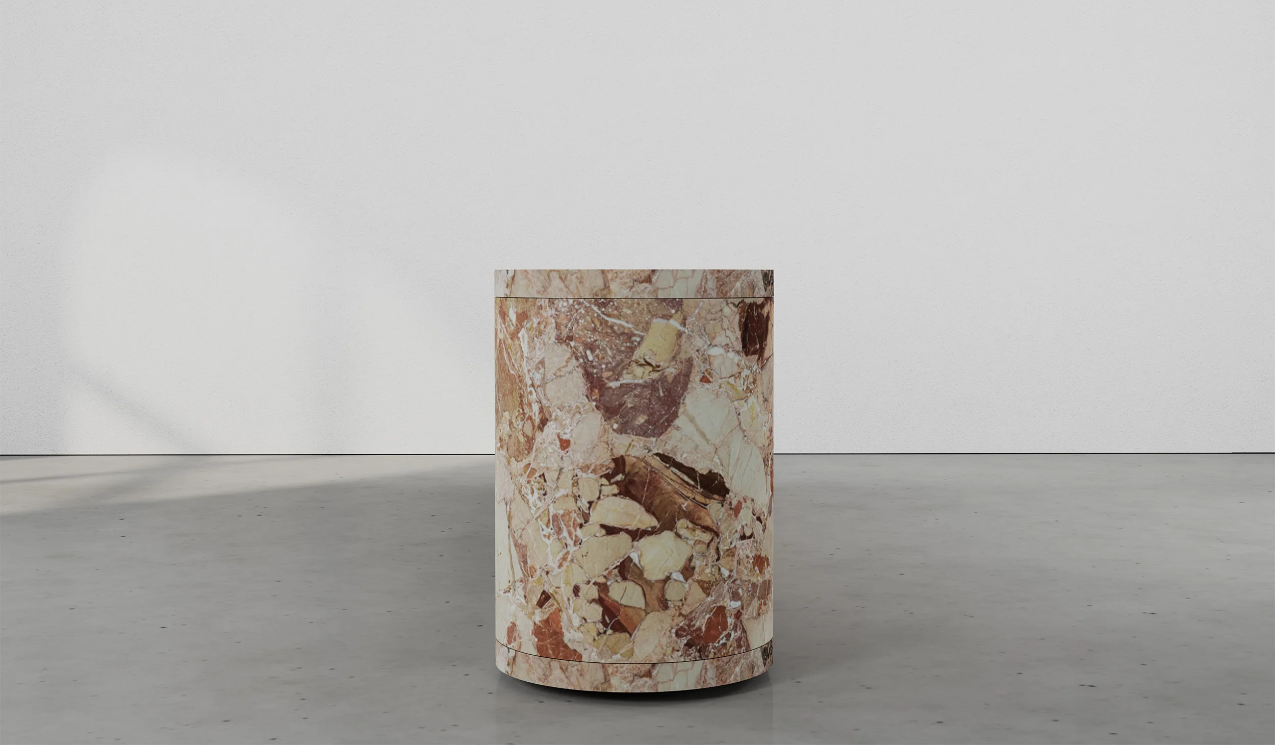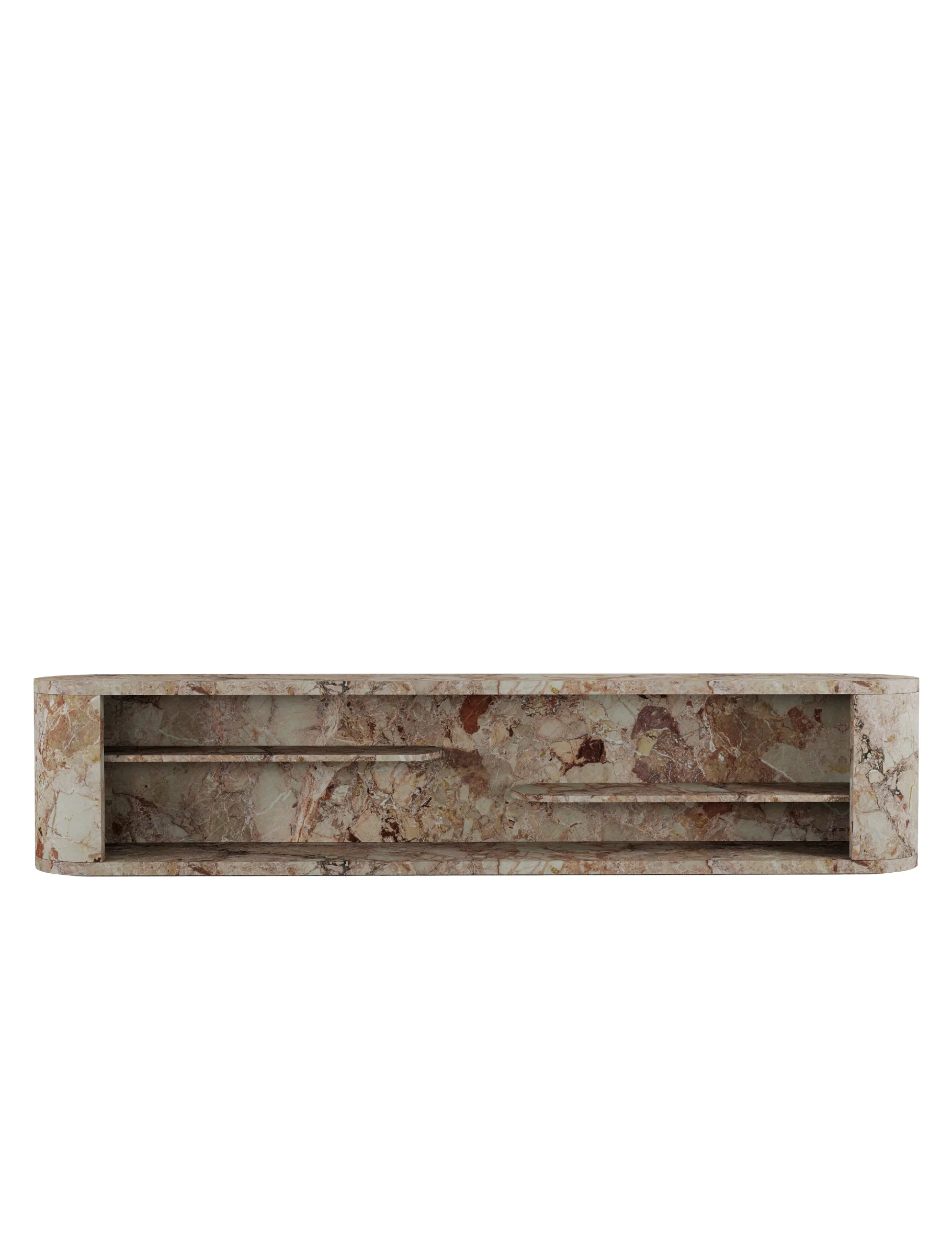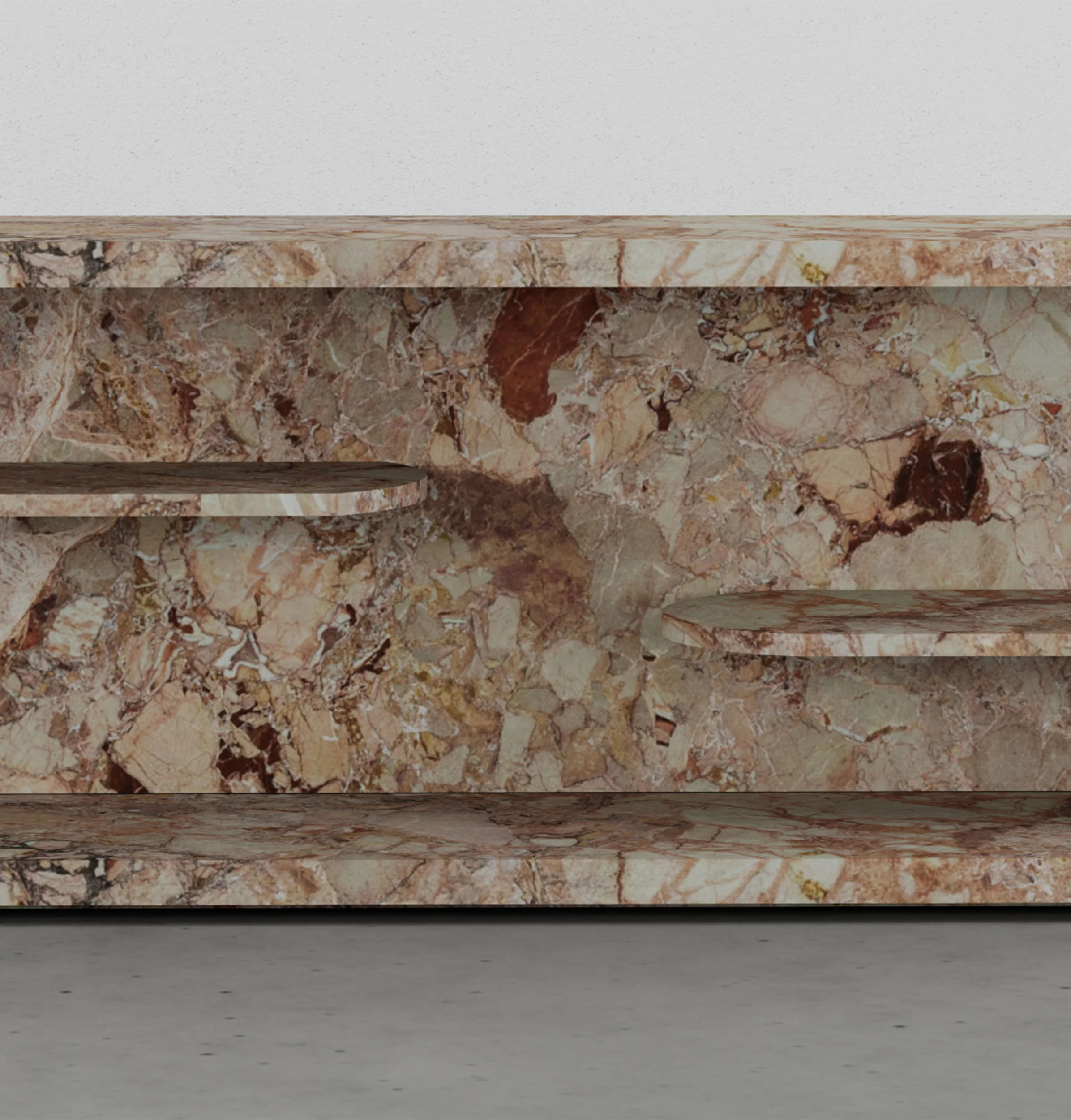 Each piece is meticulously handcrafted in Italy from Breccia Pernice marble, a richly expressive stone distinguished by warm tonal variations and intricate veining. Echoing the geological complexity of the Conero cliffs, the material carries within it a sense of depth and movement, as if shaped by centuries of natural forces. Its textured surface becomes both medium and narrative, grounding each work in a tangible sense of place