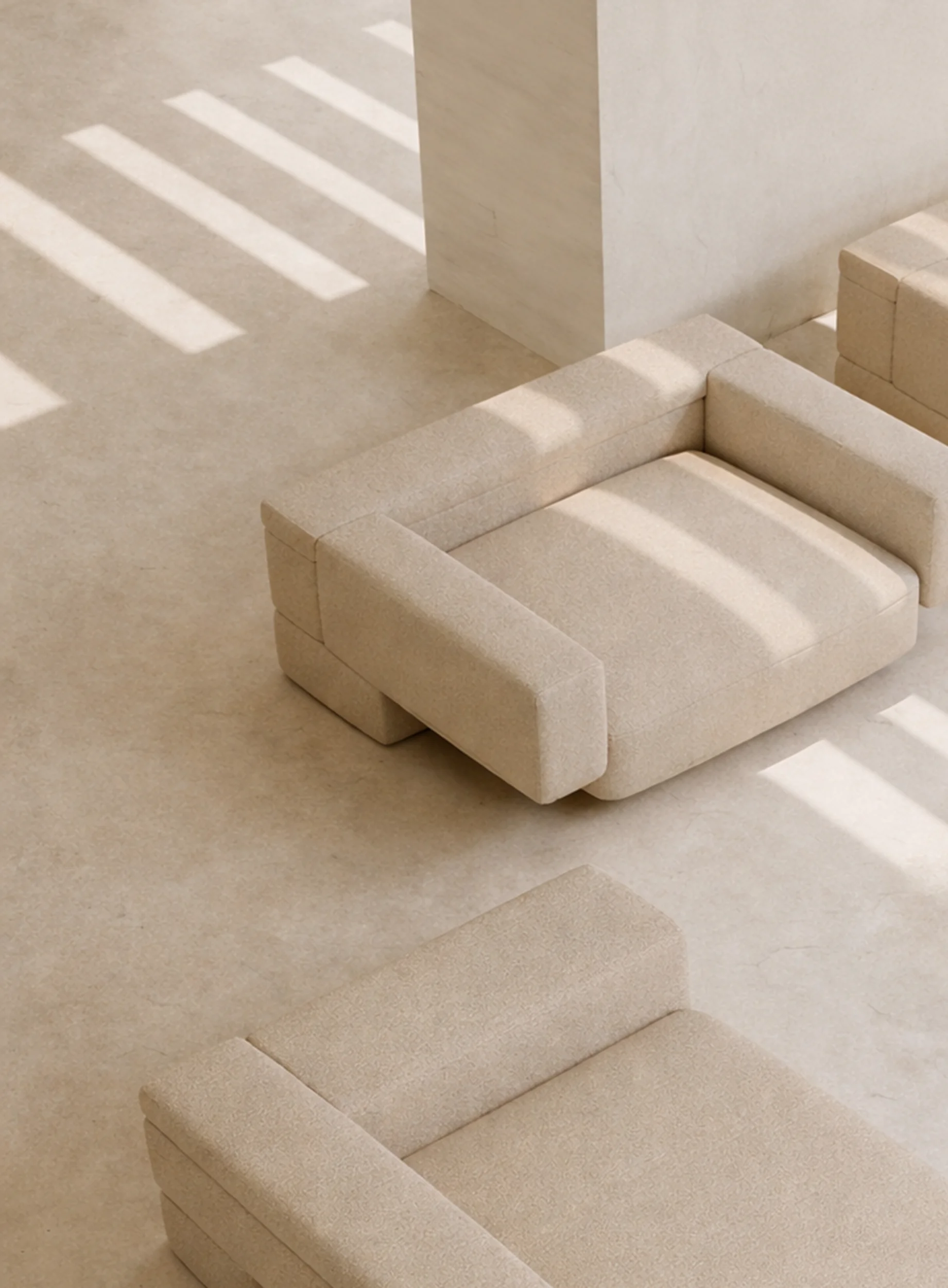 The Stillness Collection was born from Bonini’s fascination with the expressivity of structural discipline and spatial order. The collection is defined by restrained geometric volumes that evoke the clarity and sobriety of modernism, reinterpreting its sublime simplicity for contemporary living. By working in a restrained vernacular — each work features a uniform material and repetition of form — Bonini invites us to consider objects stripped of noise and how profound meaning can accrue in silence and stillnessInspired by the principles of high modernist architecture and minimalist art, Bonini specifically drew upon the architecture of Louis Kahn and the the objects of Donald Judd. In each work, we can see echoes Kahn’s structural rigor, play between light and structure, and monolithic use of material, along with an homage to Judd’s simplicity of form, quiet precision, and non-hierarchical compositions