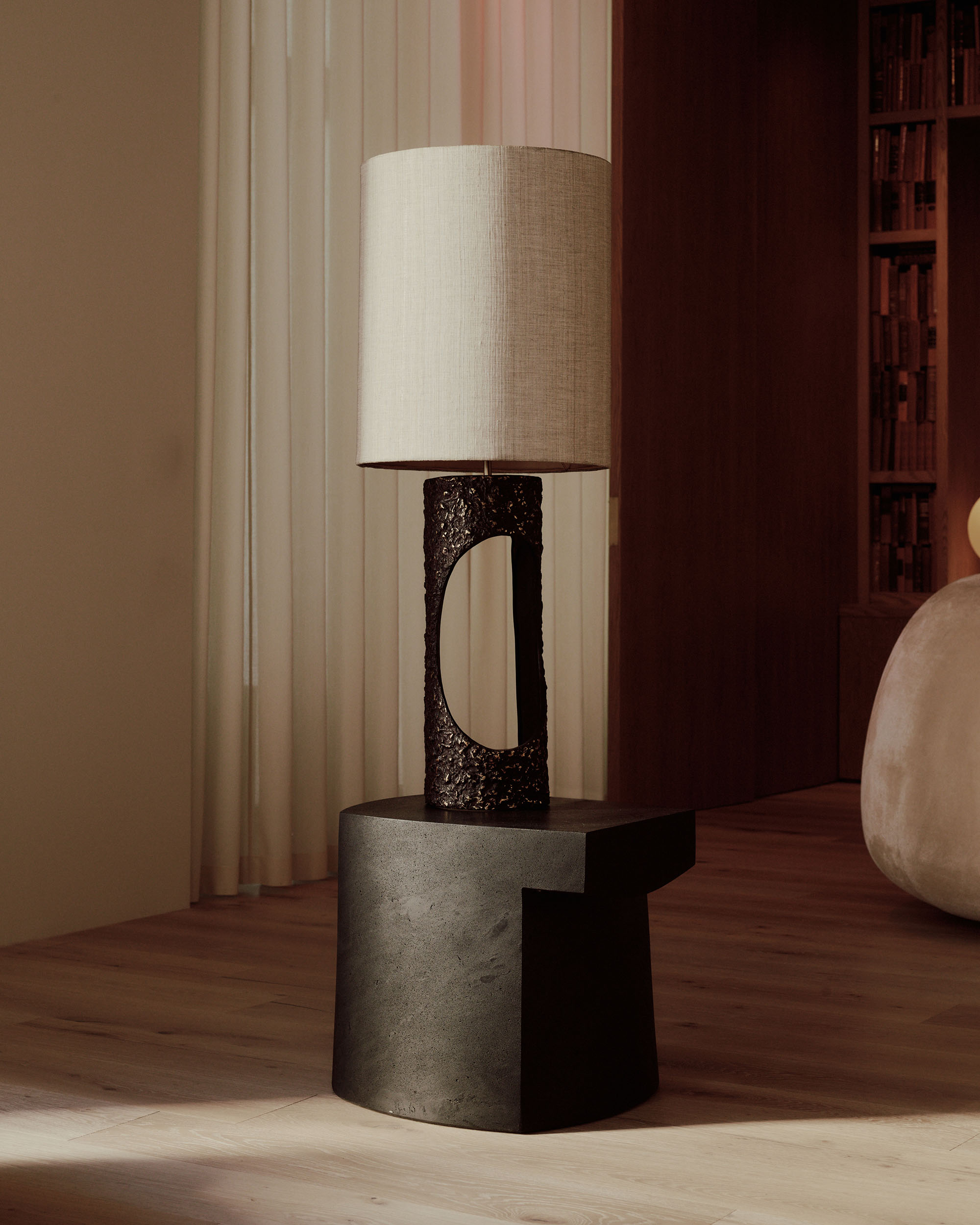 The pieces in the NUGERE collection present themselves as intimate architectures imbued with the force of the elements. Their presence, both silent and imposing, transforms the space they inhabit, inviting contemplation of materials and forms. Like a dormant crater, these pieces hold within them the trace of ancient fire, while offering themselves as surfaces for exchange, sharing, and memory