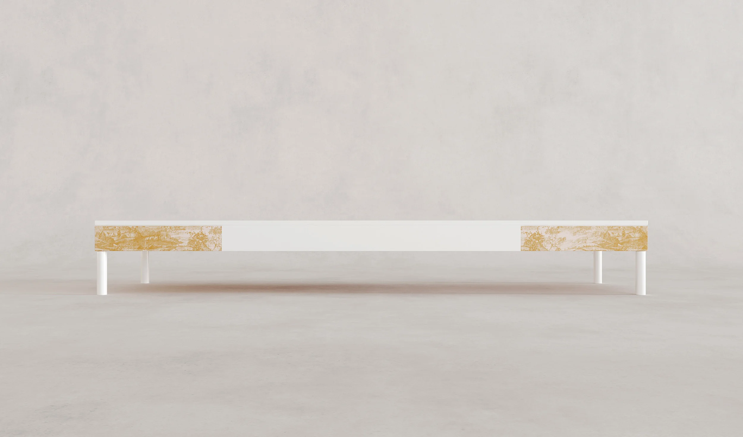 Tessuto I, designed prior to Balzano’s arrival in Rome, is a kind of architectural reverie, a fantasy of the storied Roman Villa as imagined from a distance. Characterized by weighty volumes and enveloped in luxurious Rubelli fabrics, the collection evokes a contemporary reinterpretation of Renaissance grandeur, gravitas, and sensuality. These works operate as imagined monuments, informed by history but filtered through desire, anticipation, and romantic expectation