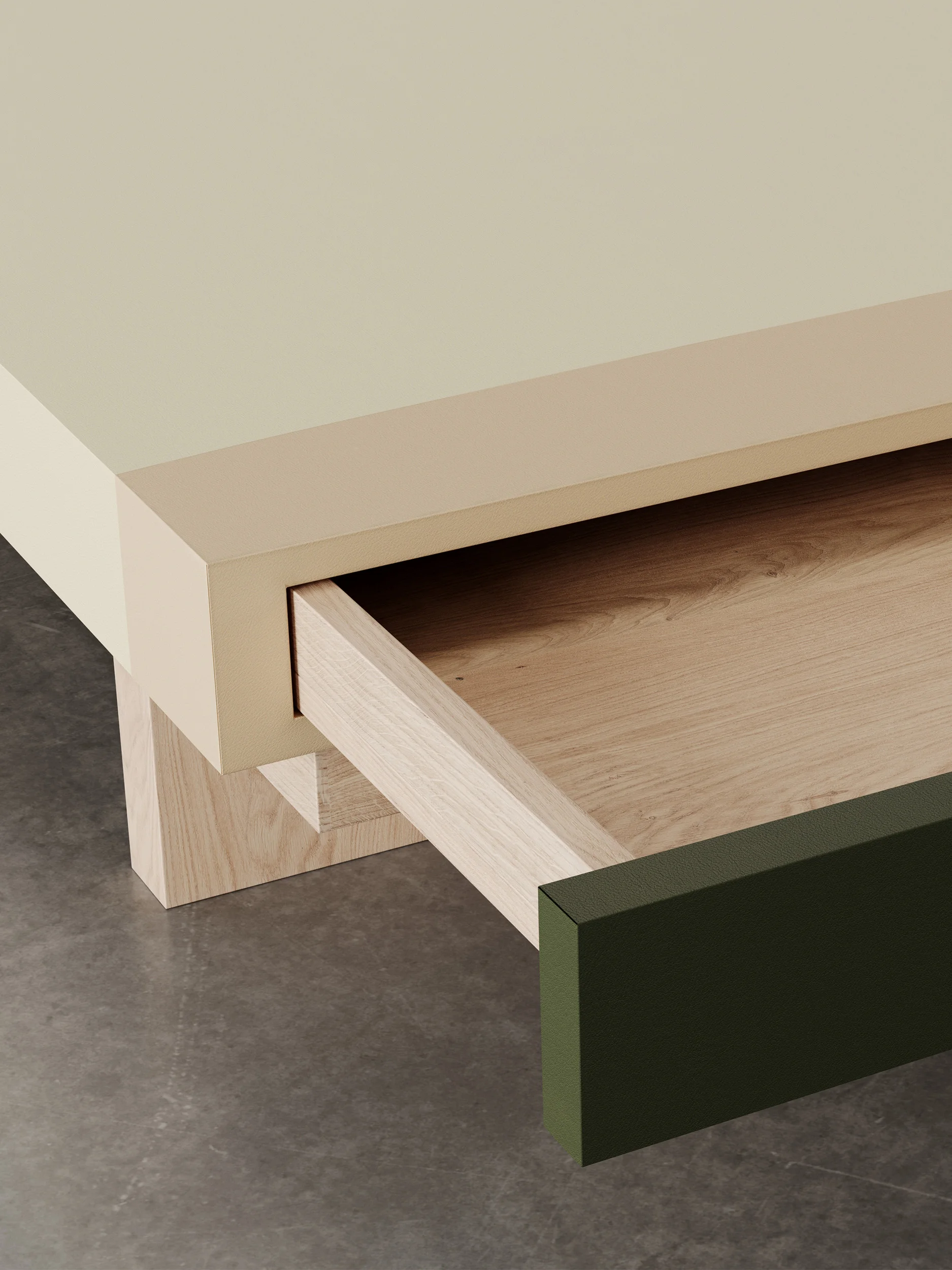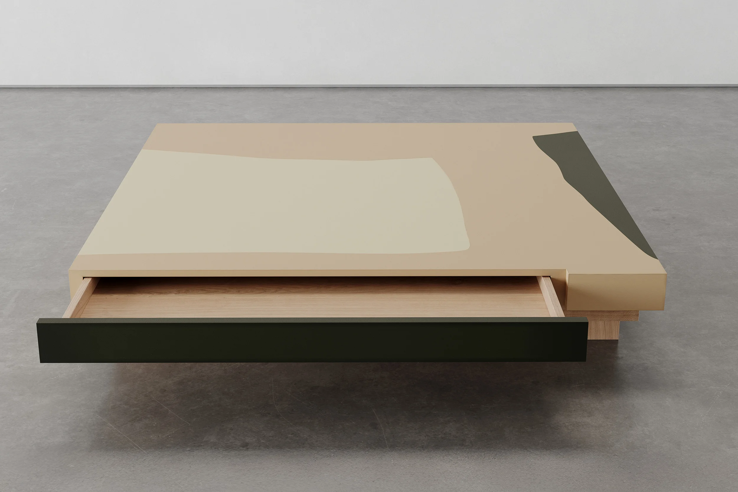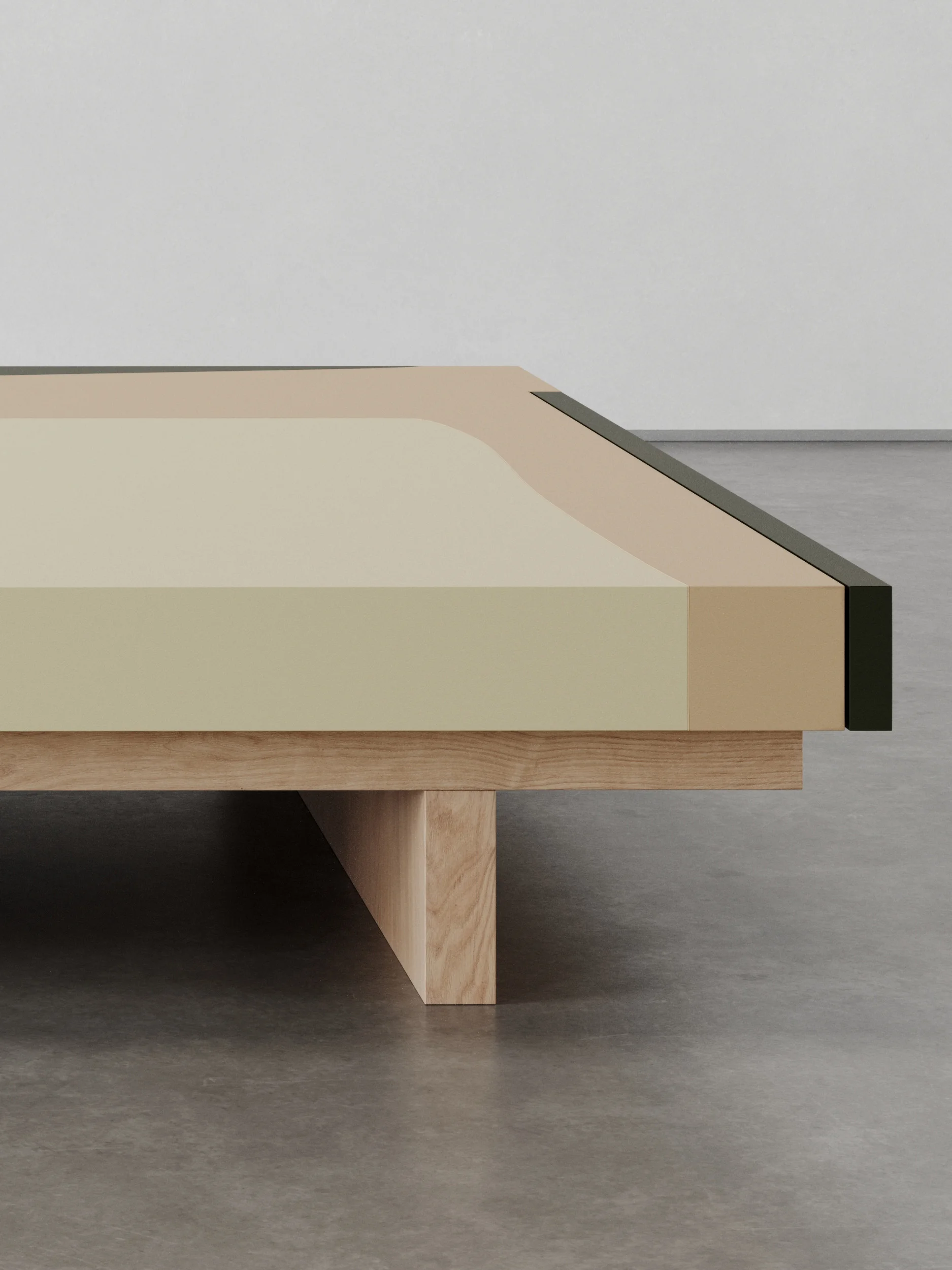 The TT3 tables in natural oak emphasize clarity, grain, and material honesty. The TT3SE Special Edition tables extend this language through the use of stained walnut wood and leather, offering deeper tonal contrast and heightened tactile richness. Handcrafted in France and produced in limited editions, the collection articulates a nuanced exploration of abstraction, landscape, touch, and time