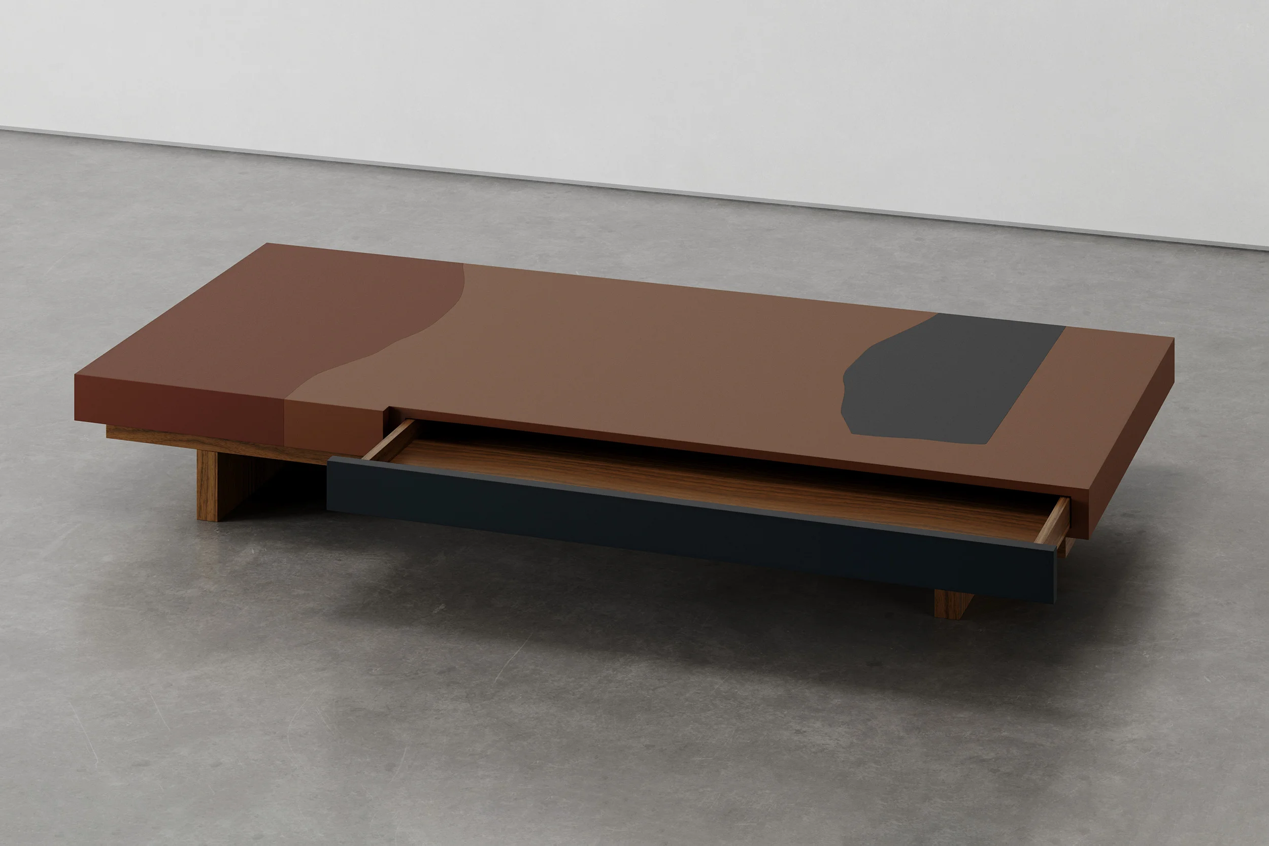 The TT3 tables in natural oak emphasize clarity, grain, and material honesty. The TT3SE Special Edition tables extend this language through the use of stained walnut wood and leather, offering deeper tonal contrast and heightened tactile richness. Handcrafted in France and produced in limited editions, the collection articulates a nuanced exploration of abstraction, landscape, touch, and time
