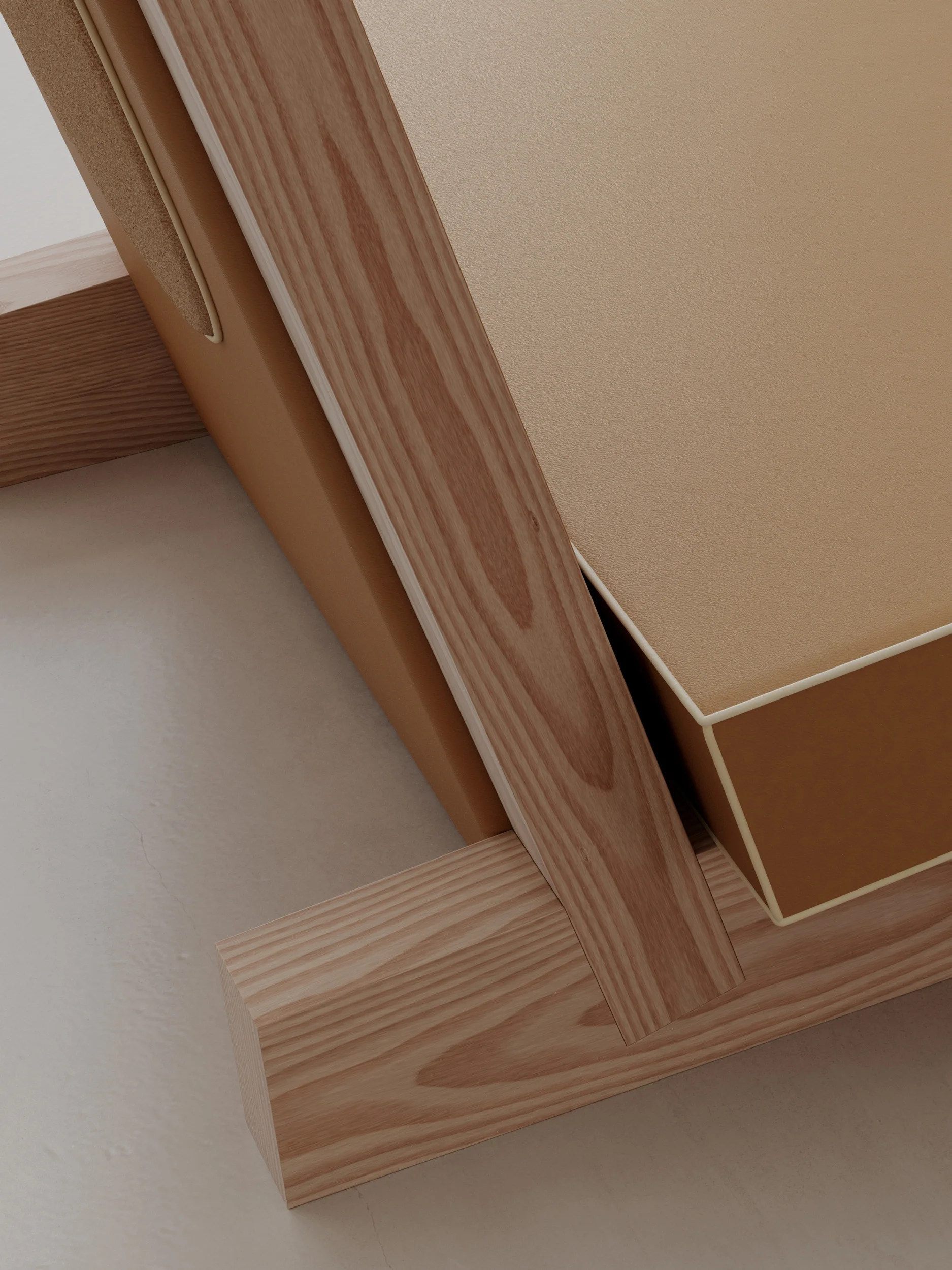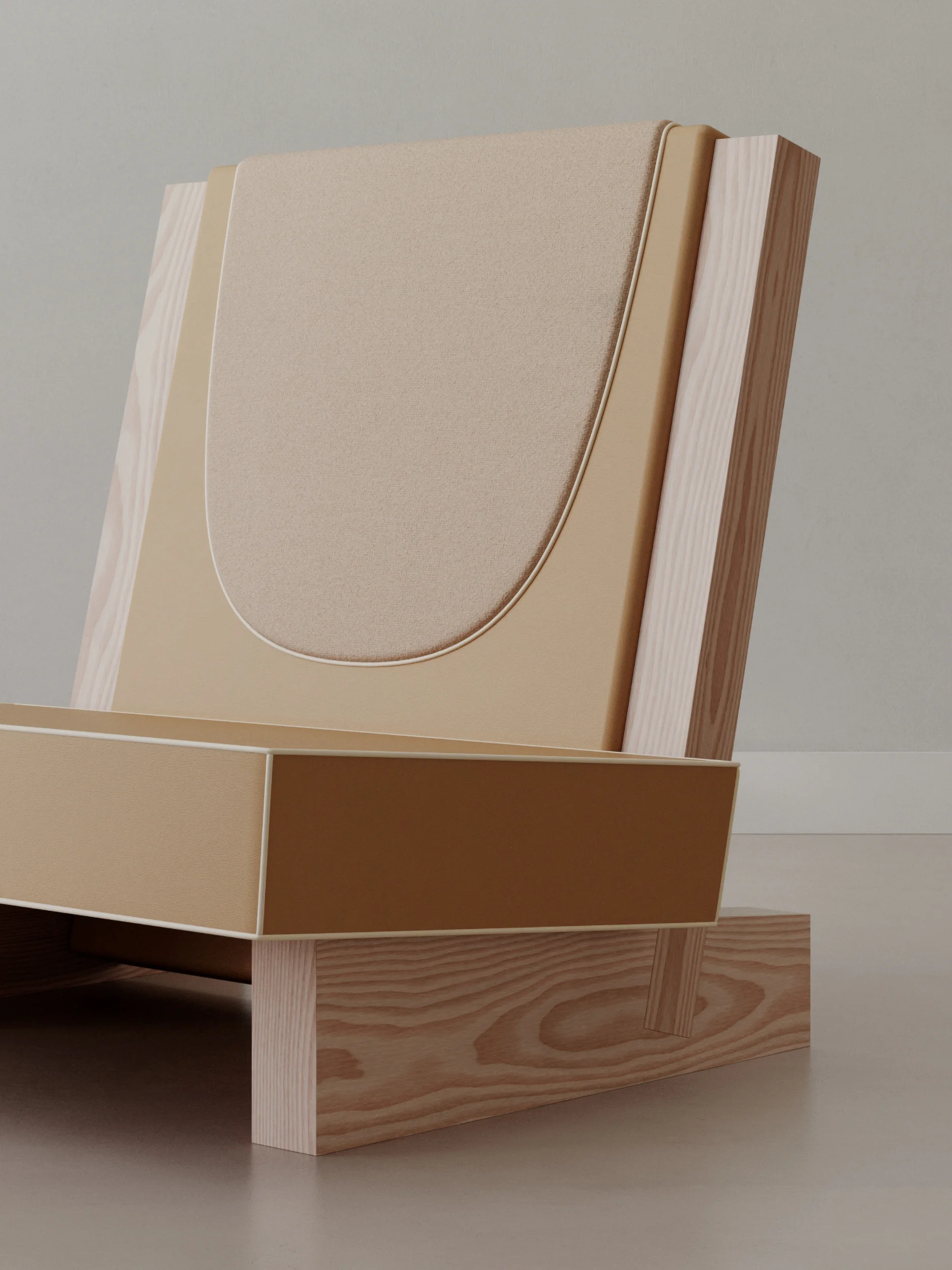 Natural Douglas wood asserts the structural logic of each piece, revealing the artisanal gesture through grain, curvature, and joinery. Seams and joints are intentionally left visible, not as technical necessities but as compositional elements. They function as a graphic signature, expressing how the object is made and standing as one of the defining aesthetic markers of Sattio Studio