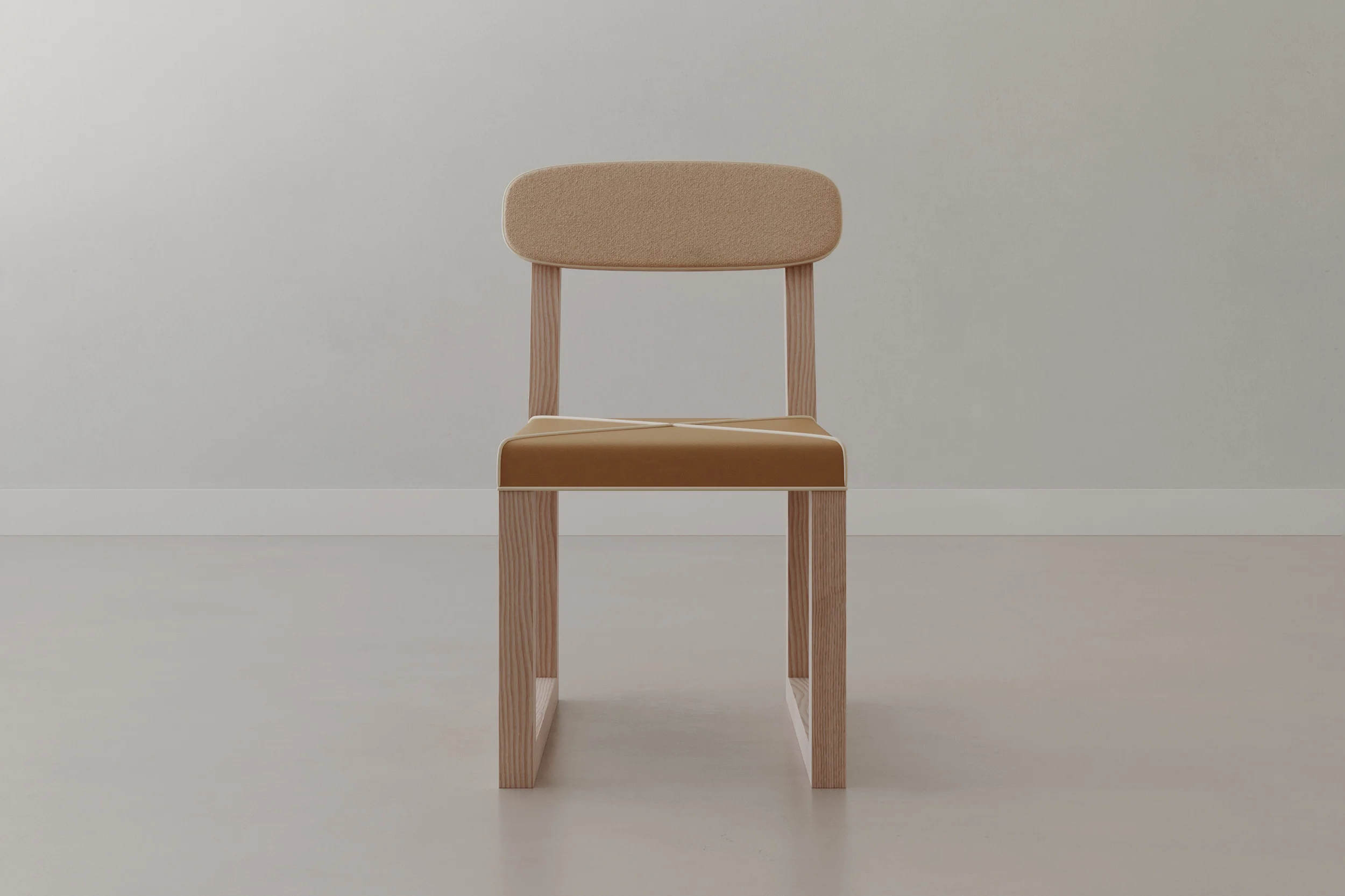 Natural Douglas wood asserts the structural logic of each piece, revealing the artisanal gesture through grain, curvature, and joinery. Seams and joints are intentionally left visible, not as technical necessities but as compositional elements. They function as a graphic signature, expressing how the object is made and standing as one of the defining aesthetic markers of Sattio Studio
