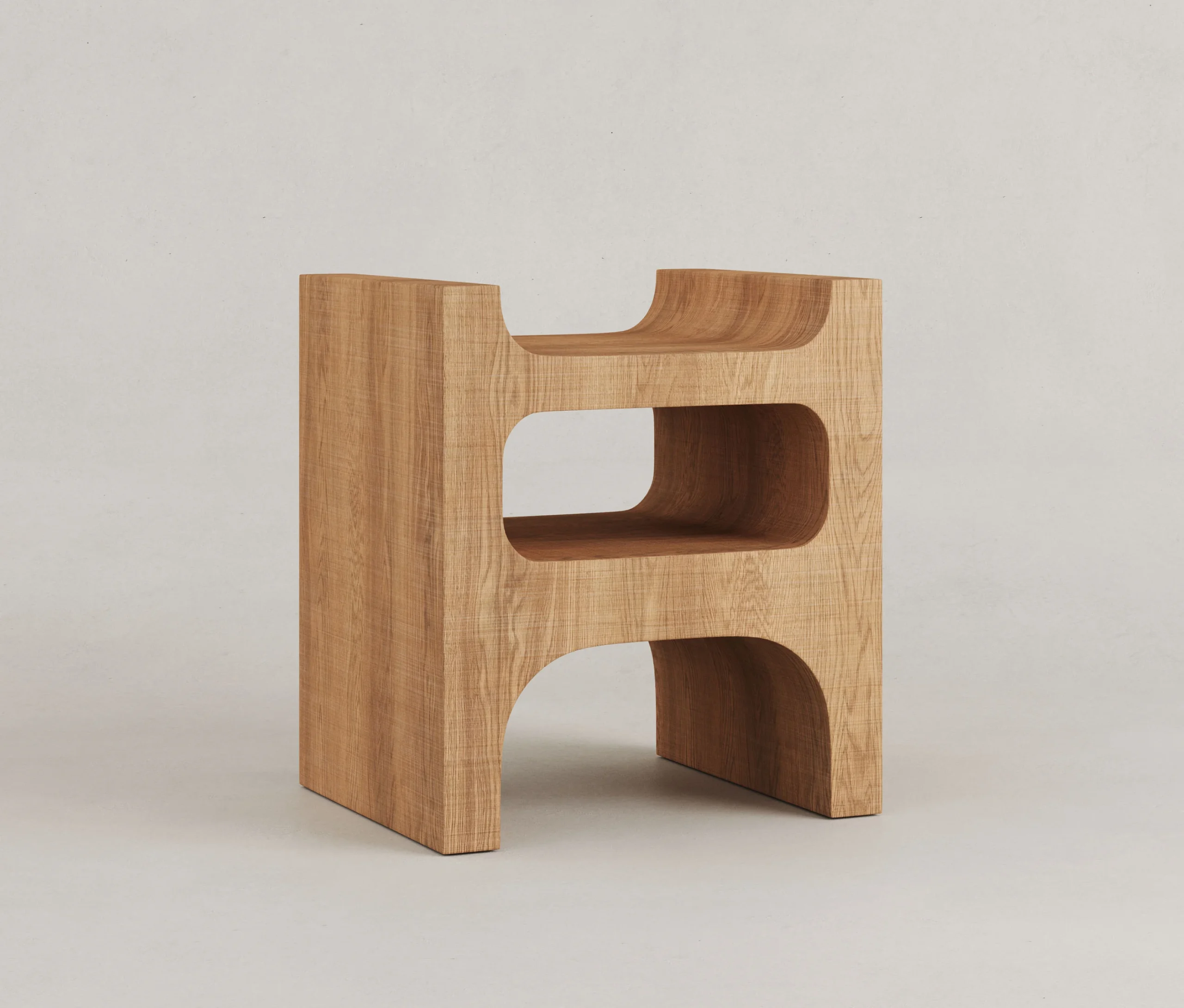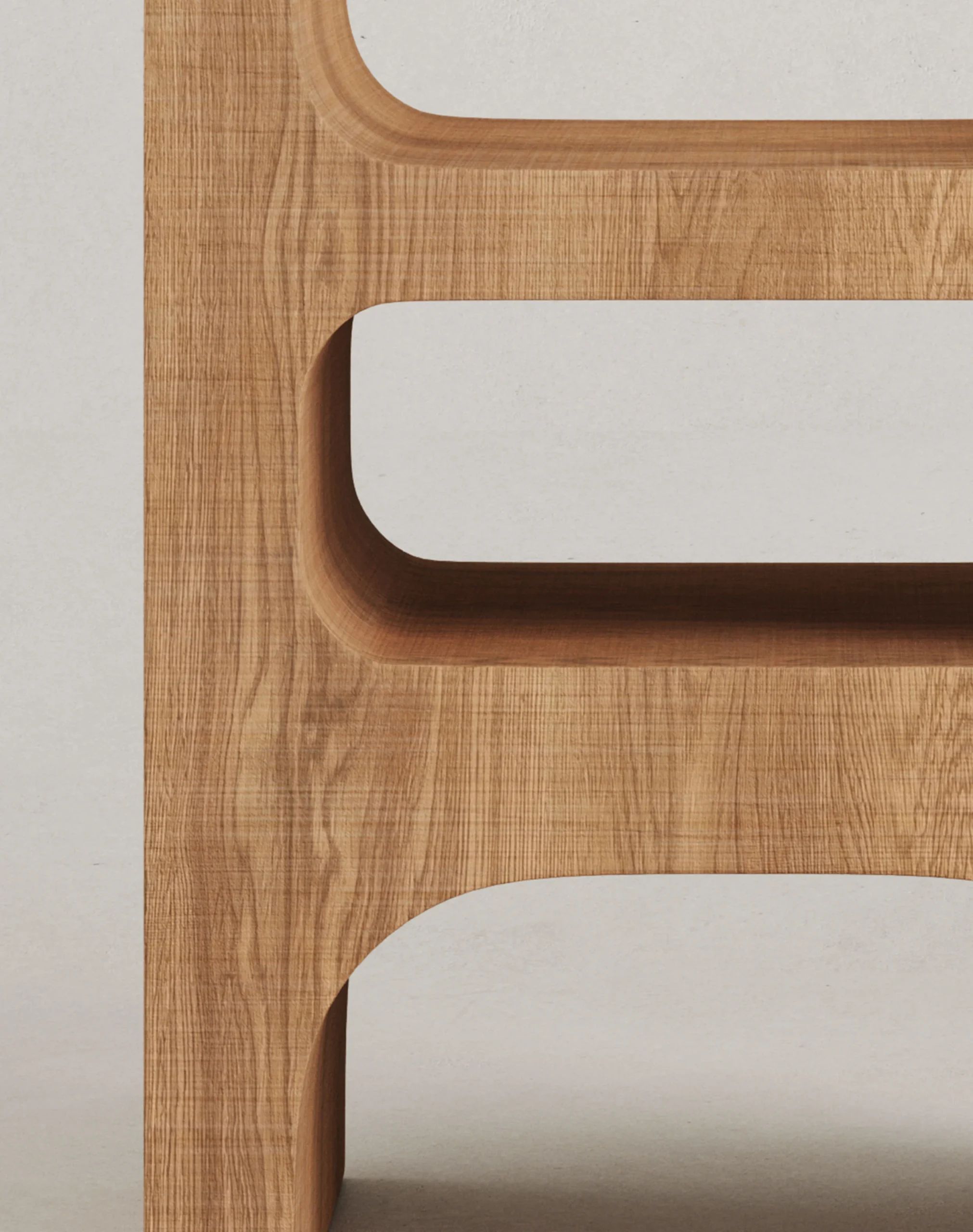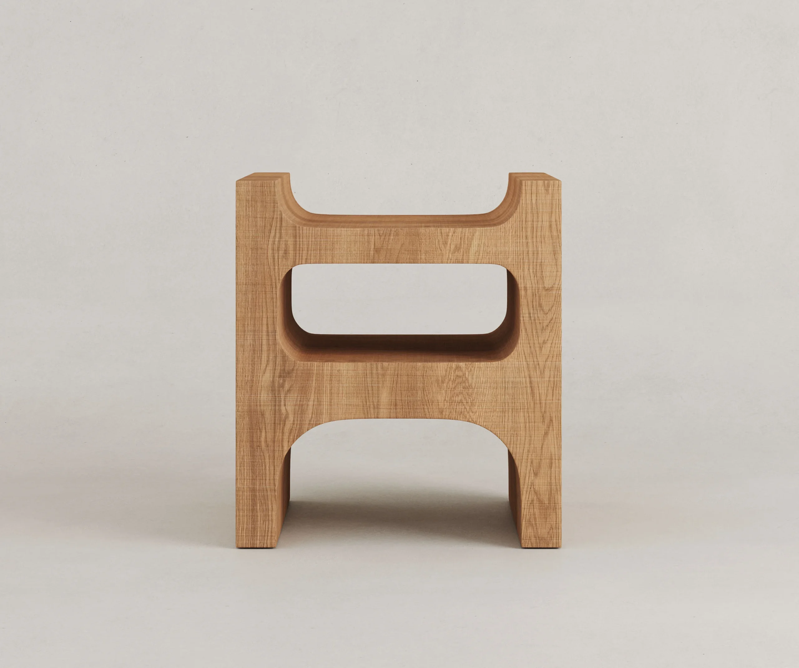 With its animated silhouette, the TUMBA bedside table transforms a utilitarian object into one of personality and charm. The design extends beyond functionality, serving as a companion within the bedroom. Its compact form greets daily routines with a sense of optimism, blending practicality with wit. Whether configured with or without its drawer, TUMBA exemplifies Andrusenko’s exploration of furniture as character, bridging object and presence