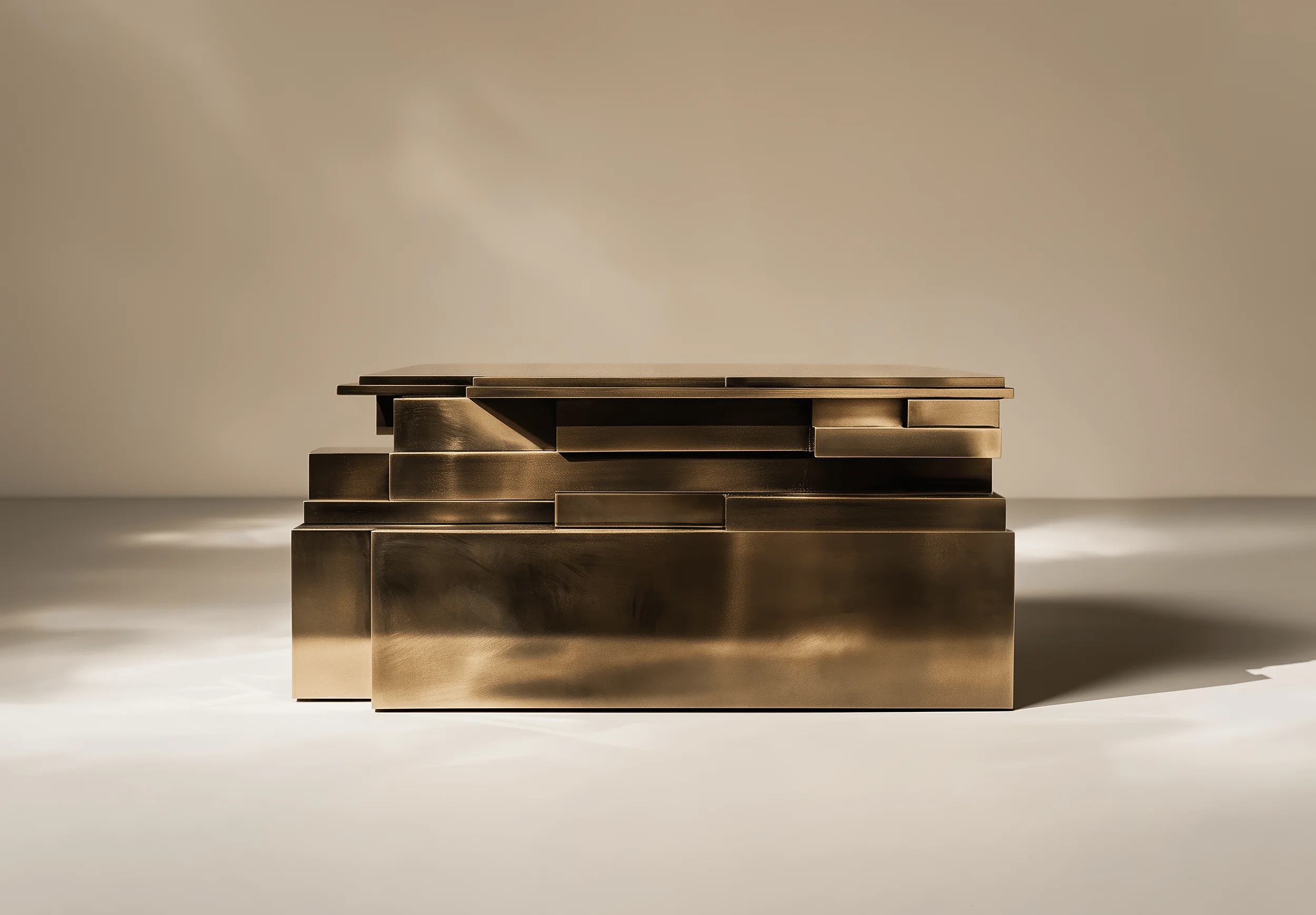 The UMBRAE series investigates the architecture of shadows. The certainty of bronze is unsettled by the quietest of gestures and permanence yields to quiet shifts in perception. Constructed from panels and blocks, each table begins with a vocabulary of solidity with forms that appear anchored and deliberate. This sense of grounded permanence feels absolute until we notice select fissures in the geometry: surfaces fracture, lines falter, and in these subtle displacements, the shadow finds its voice