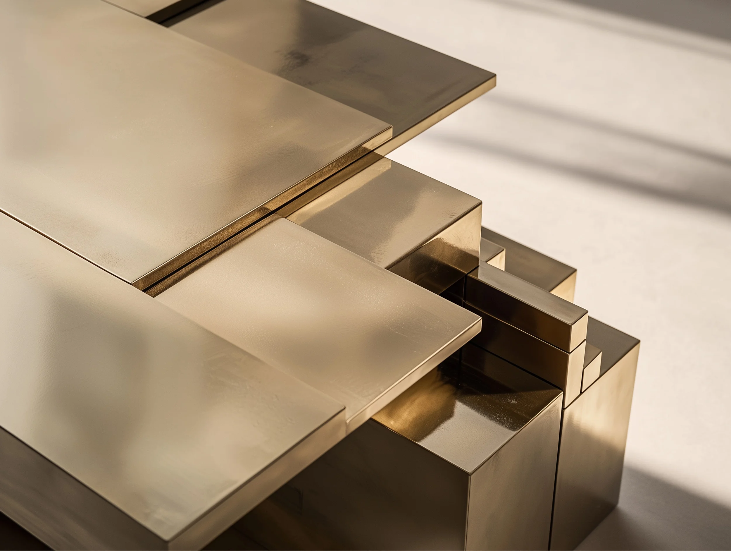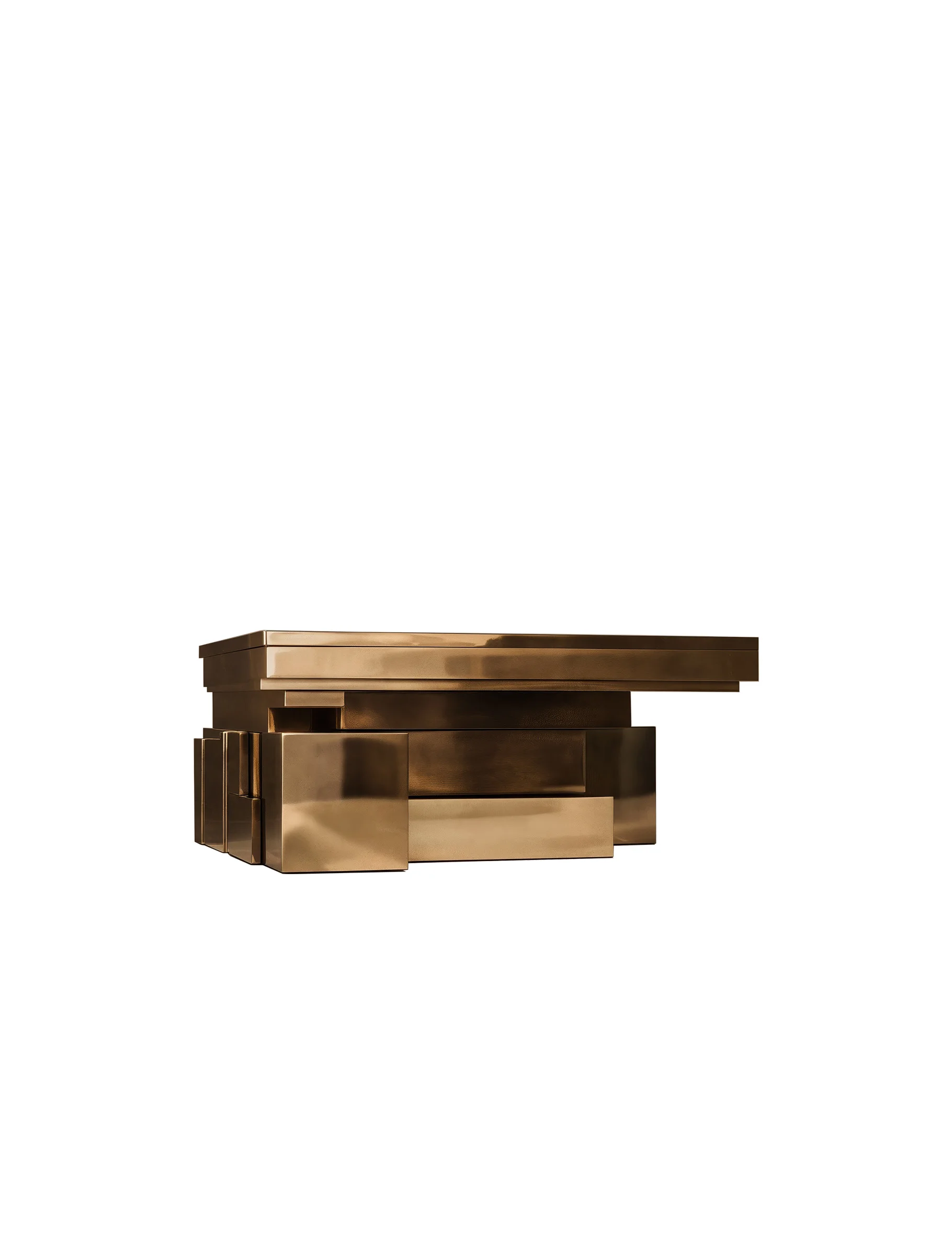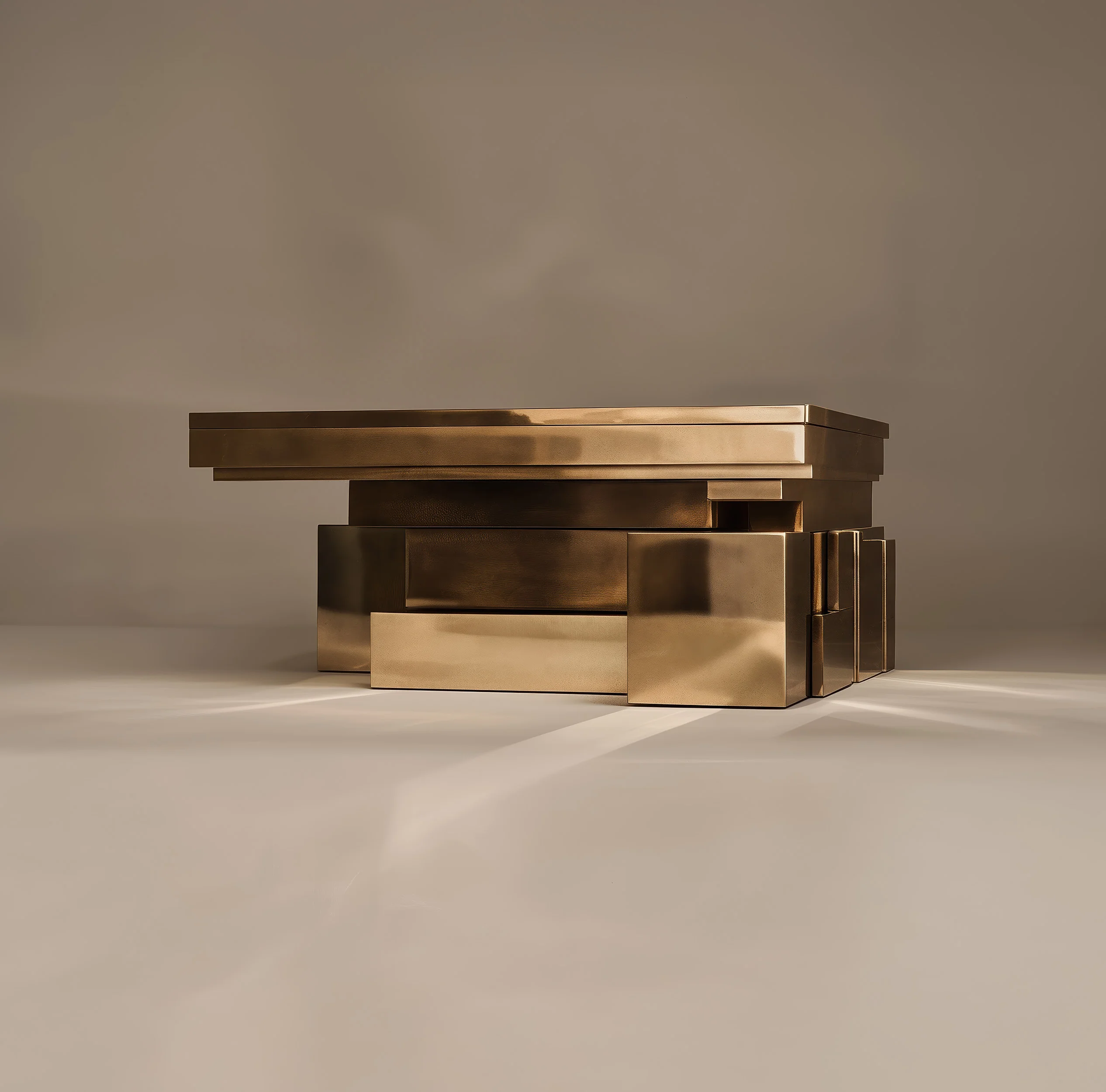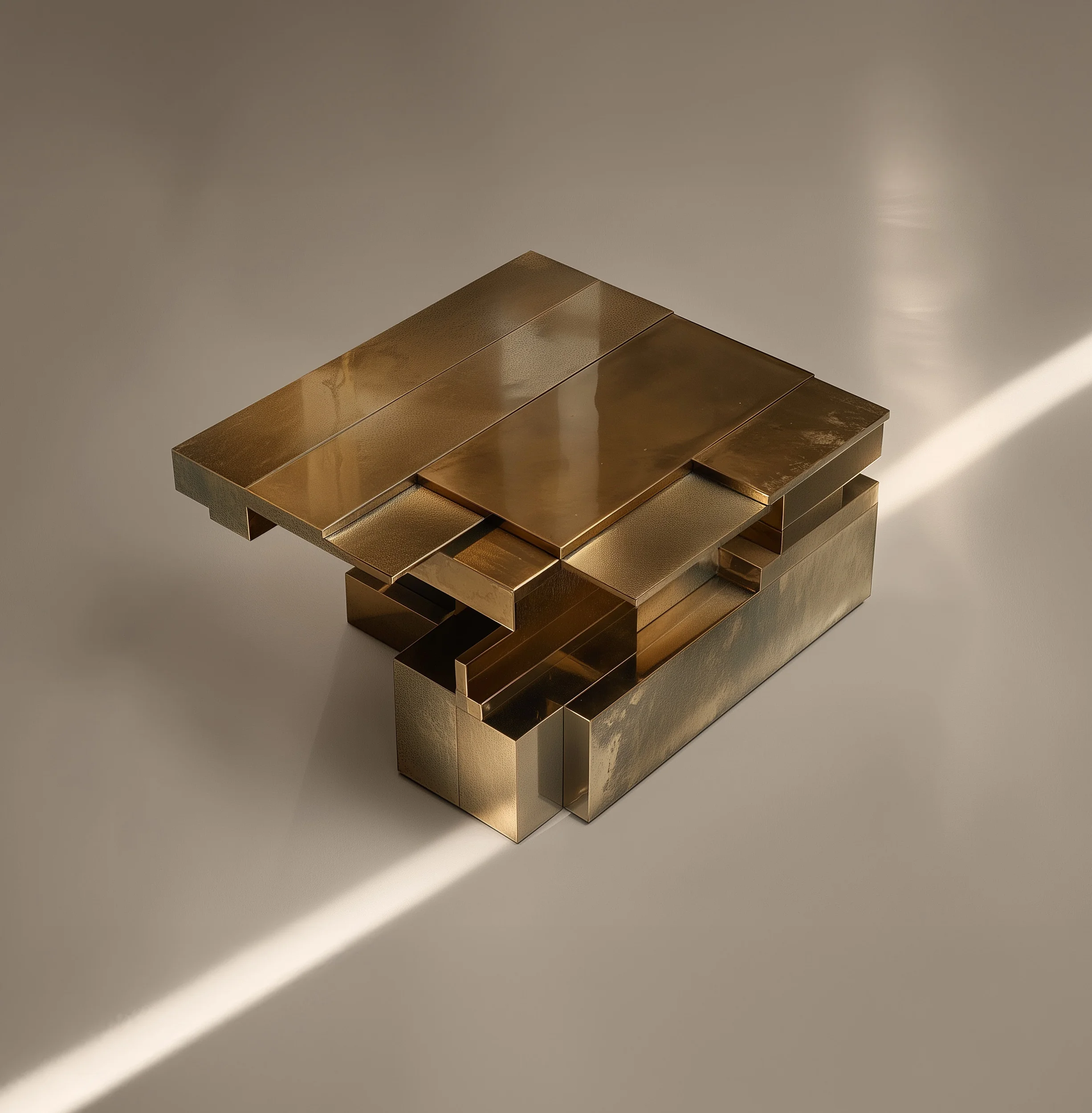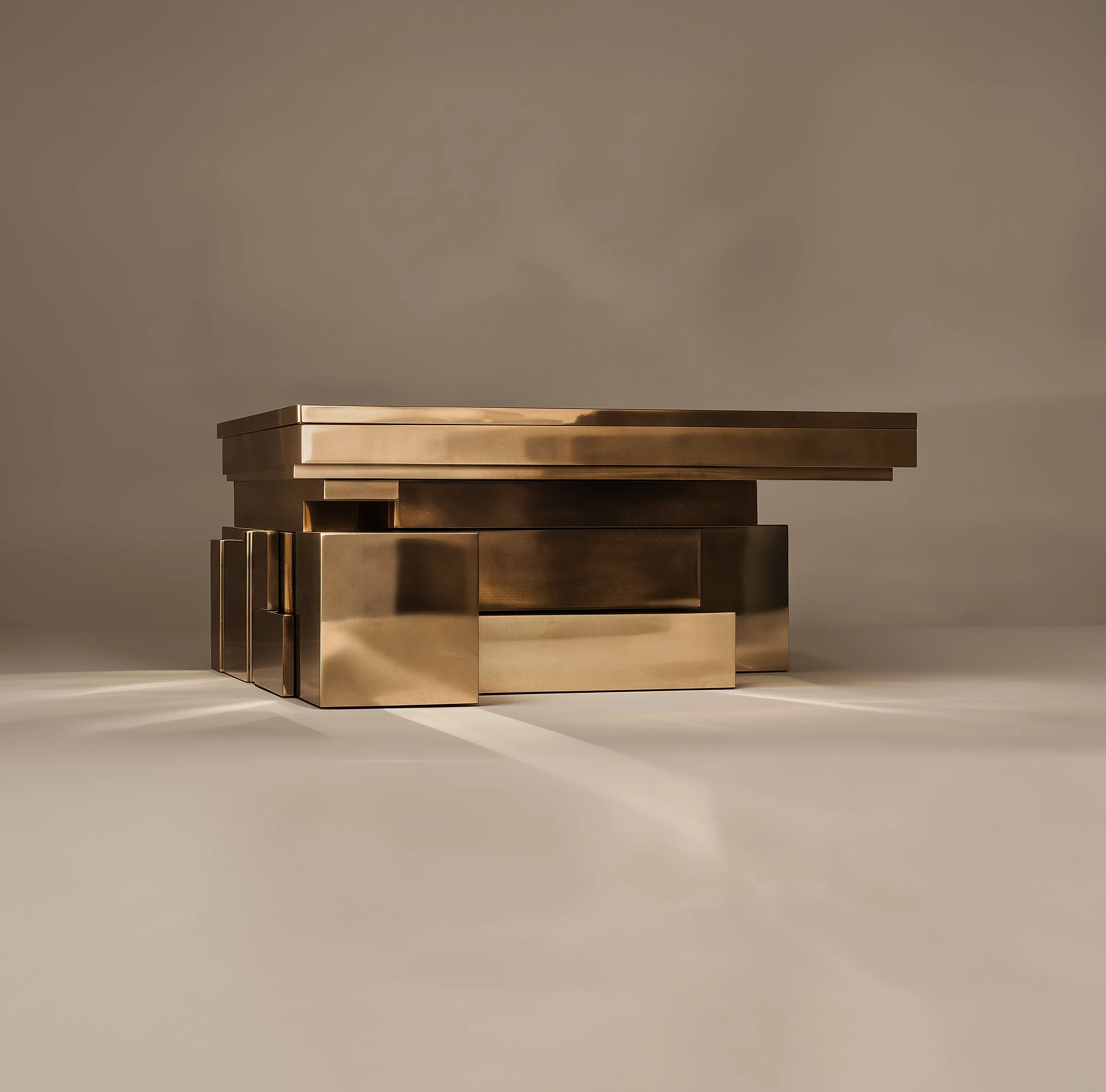 The UMBRAE series investigates the architecture of shadows. The certainty of bronze is unsettled by the quietest of gestures and permanence yields to quiet shifts in perception. Constructed from panels and blocks, each table begins with a vocabulary of solidity with forms that appear anchored and deliberate. This sense of grounded permanence feels absolute until we notice select fissures in the geometry: surfaces fracture, lines falter, and in these subtle displacements, the shadow finds its voice