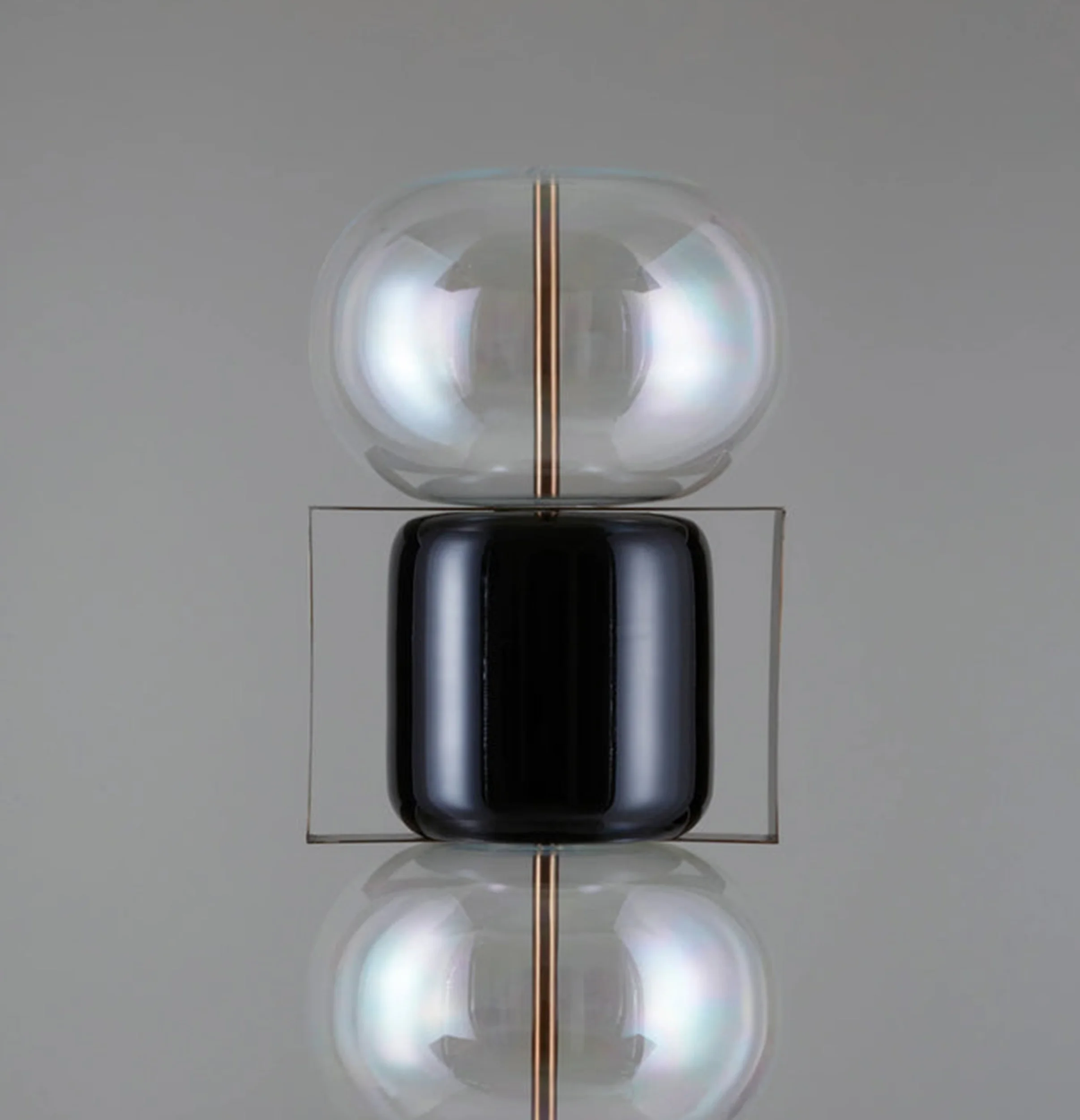 The Celestial Harmony Lamp is a sculptural meditation on balance, rhythm, and light, uniting the sensuality of fluid form with the precision of modern craftsmanship. Alternating spheres of clear and deep ebony glass rise in quiet succession along a brushed brass axis, composing a vertical symphony of contrast and reflection. This calibrated interplay evokes the waxing and waning of an eclipse—moments when darkness and illumination coexist in fragile equilibrium