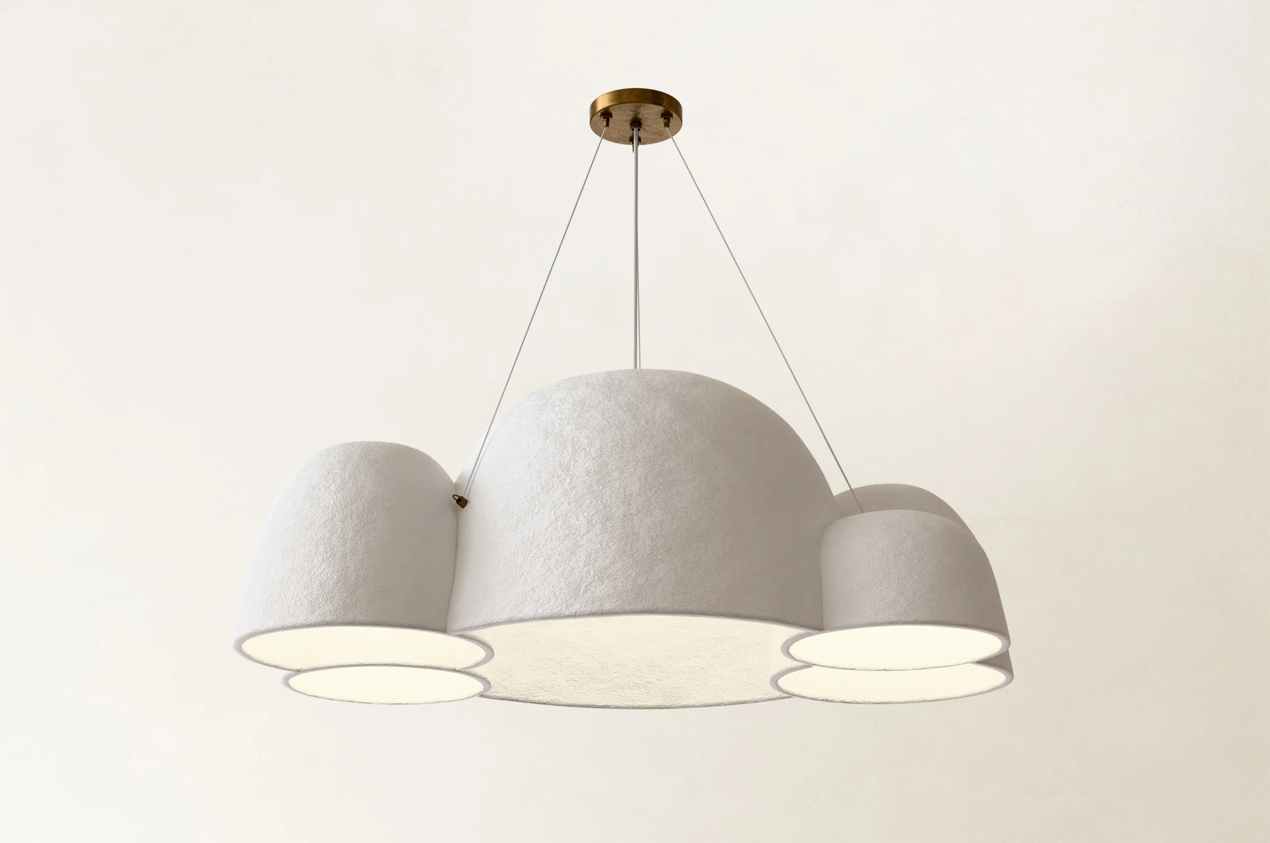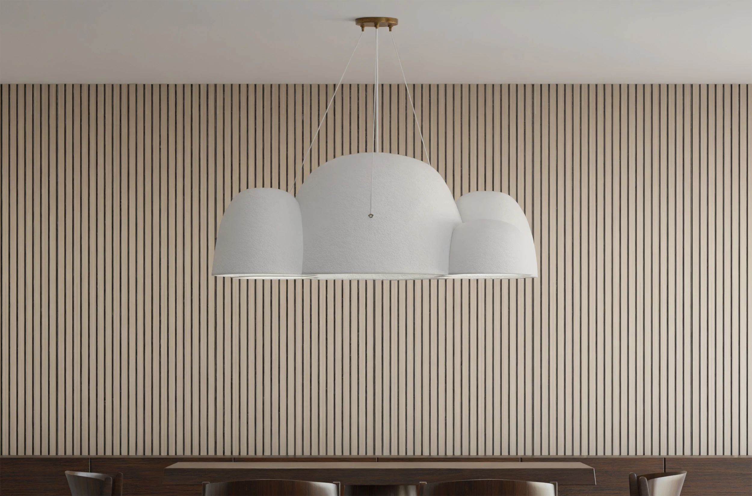 THE COLLINE LIGHTING COLLECTION by WARR is based on THE INTERCONNECTEDNESS OF LANDSCAPES THAT HAVE FORMED OVER THOUSANDS OF YEARS. IT FEATURES COMPOSED YET ORGANIC SHAPES THAT ARE ABSTRACT, DOMED, AND STRETCHED INTO ROLLING FORMS. THESE MOUND-LIKE STRUCTURES recall THE HILLS AND VALLEYS THAT PERMEATE warr’s home STATE OF GEORGIA. Each pendant in THE collection embodies TIMELESS ELEGANCE BLENDED WITH ORGANIC, CALMING, AND INNOVATIVE FORMS