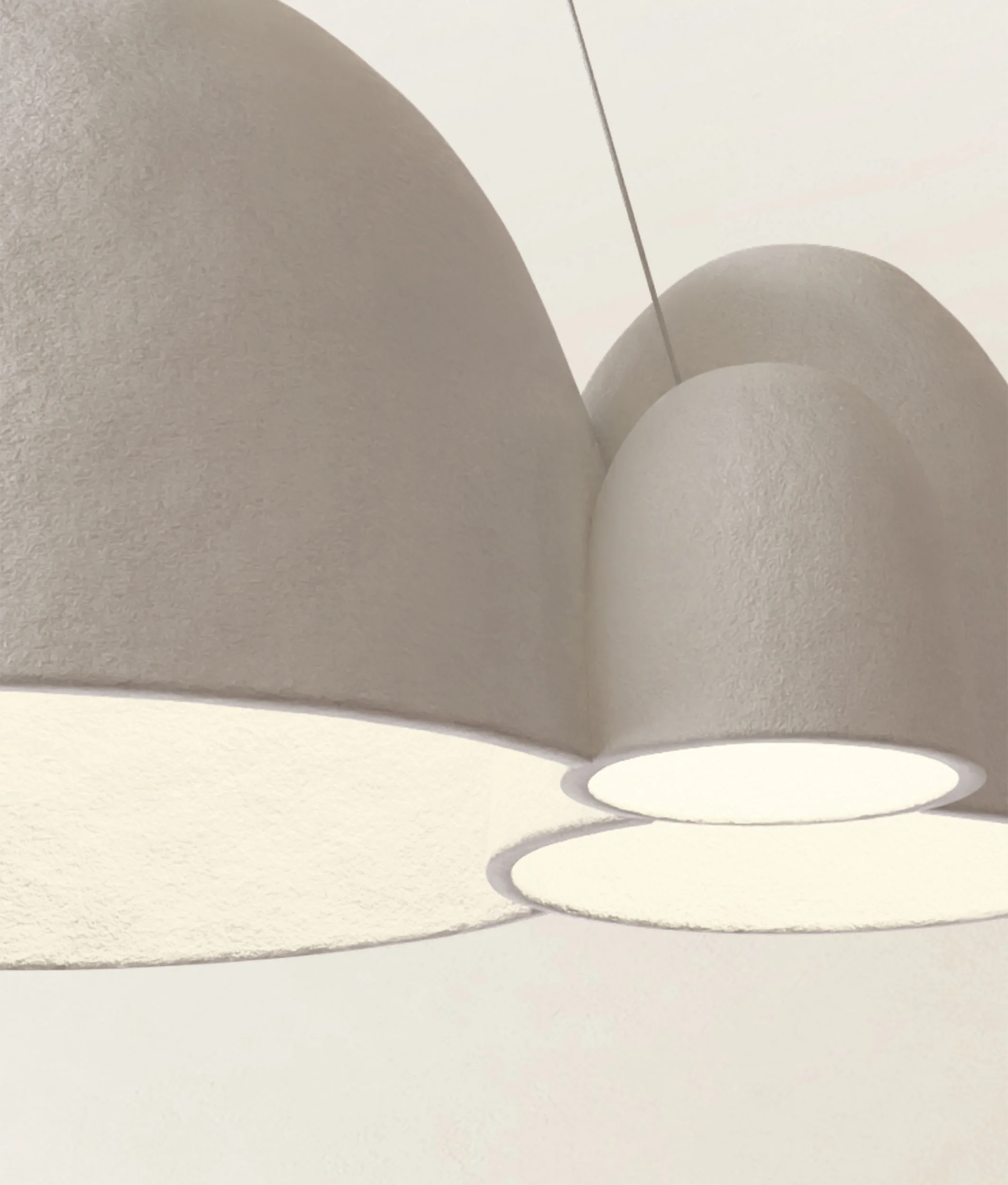 THE COLLINE LIGHTING COLLECTION by WARR is based on THE INTERCONNECTEDNESS OF LANDSCAPES THAT HAVE FORMED OVER THOUSANDS OF YEARS. IT FEATURES COMPOSED YET ORGANIC SHAPES THAT ARE ABSTRACT, DOMED, AND STRETCHED INTO ROLLING FORMS. THESE MOUND-LIKE STRUCTURES recall THE HILLS AND VALLEYS THAT PERMEATE warr’s home STATE OF GEORGIA. Each pendant in THE collection embodies TIMELESS ELEGANCE BLENDED WITH ORGANIC, CALMING, AND INNOVATIVE FORMS