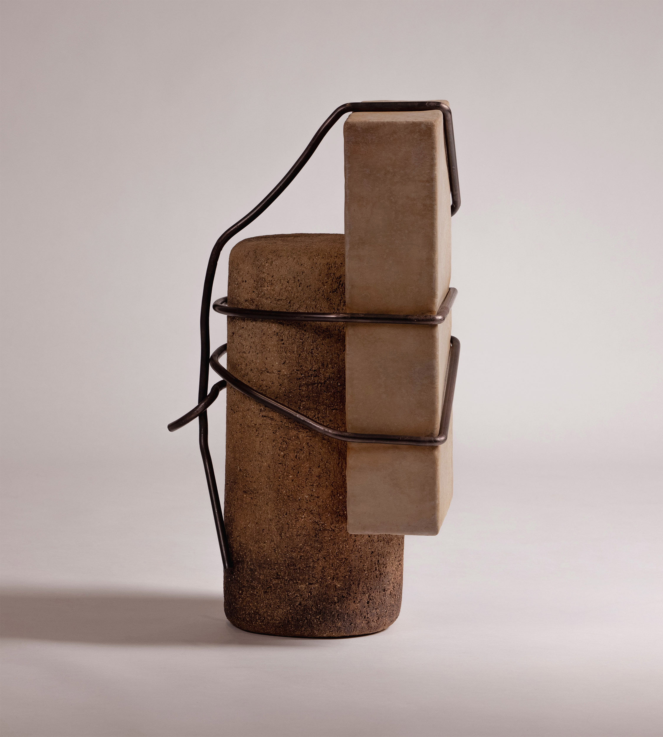A Polish born artist, Cwiek crafts striking stoneware sculptures that combine clean geometric forms and supple organic shapes. Boldly traversing historical periods and aesthetic vocabularies, Cwiek is inspired by sources as varied as the dynamic and energetic gestures of abstract expressionism, the ingenuity and craft of modernist industrial design, and the utilitarian minimalism of soviet brutalism. These influences infuse his work with a thrilling sense of tension, in which the soft, emotional, and natural stands in counterpoint to the hard, intellectual, and urban