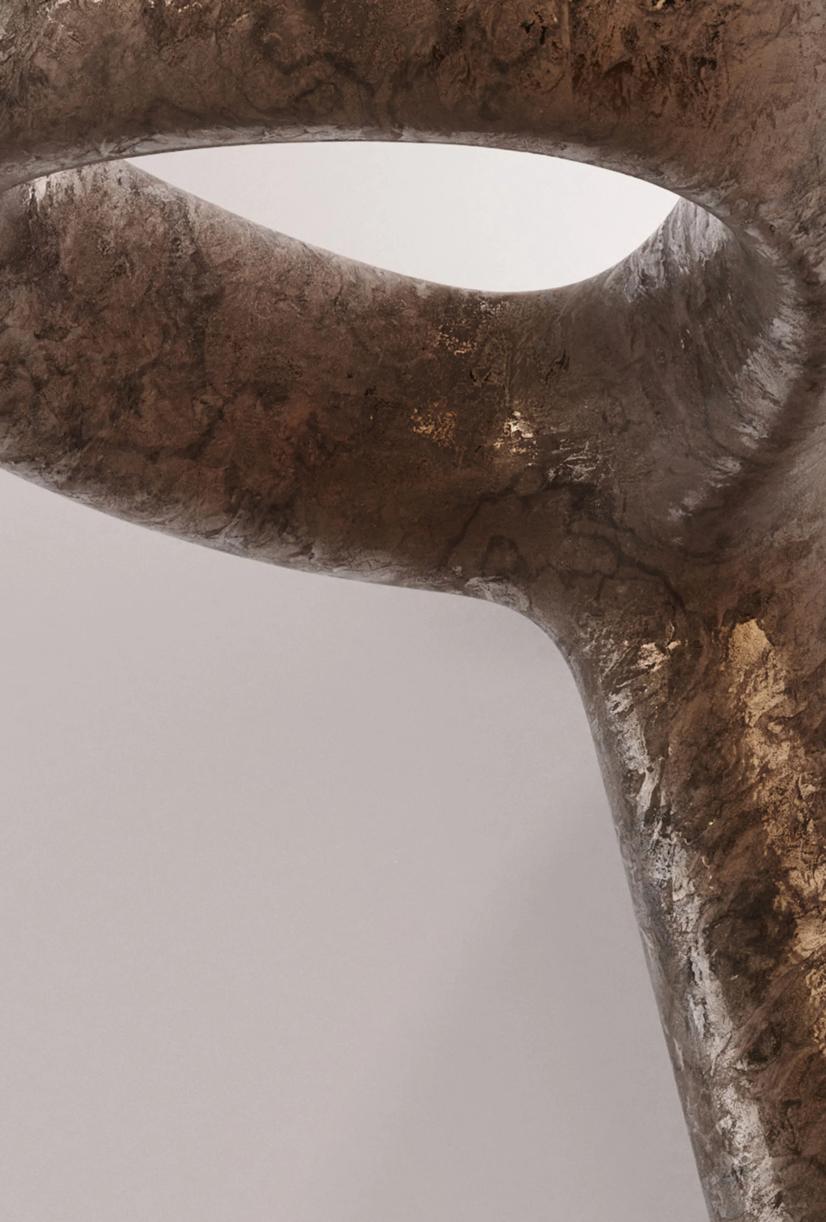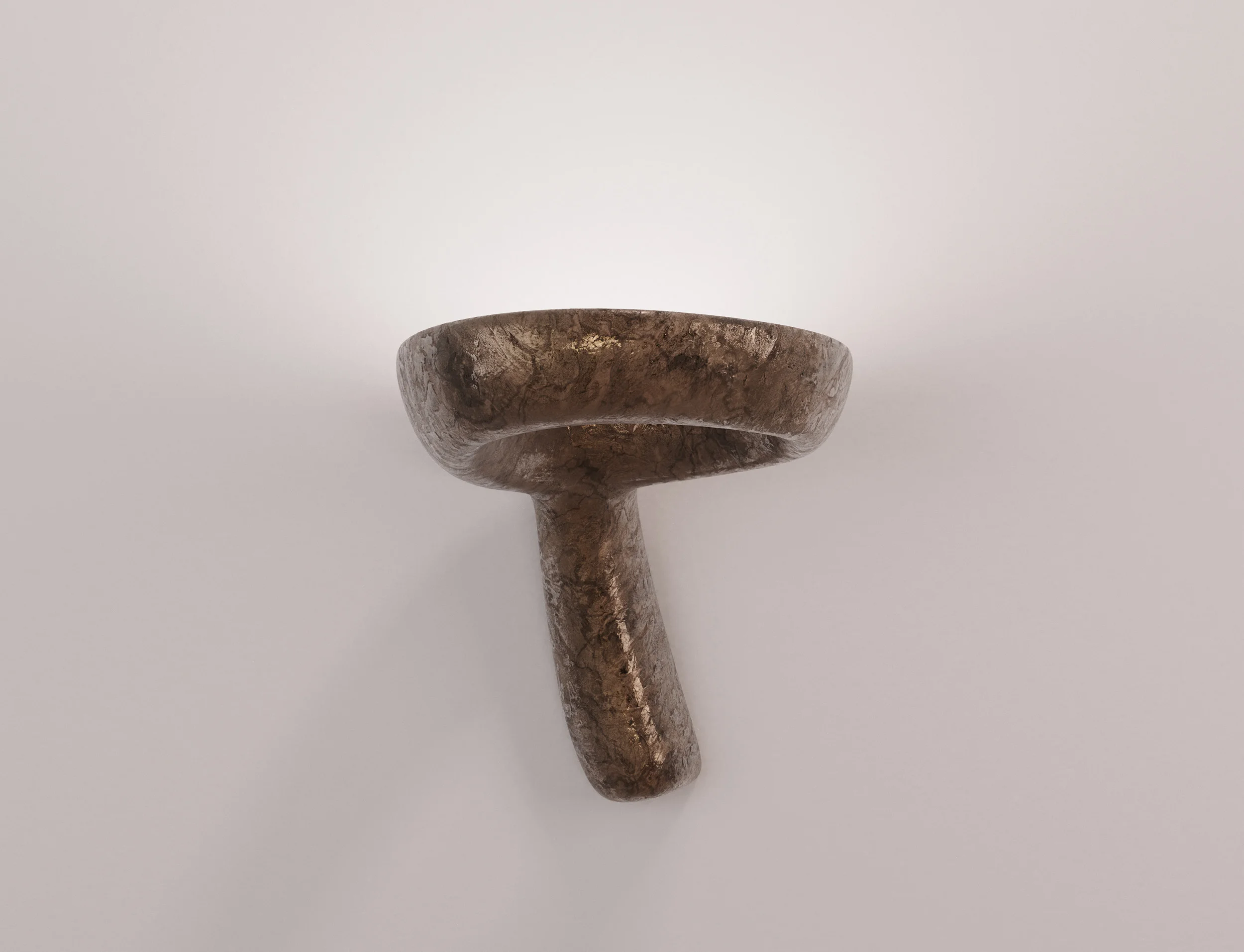 The body of each lamp, which doubles as its lampshade, is rendered in a single, seamless piece of cast bronze. The process begins with a plaster model, sculpted by hand to articulate the lamp’s organic, irregular contours. These forms, suggestive of natural growth, shape space dynamically, with voids becoming integral to their composition. From the plaster model, molds are created, and wax models are cast, eventually culminating in the final bronze structure