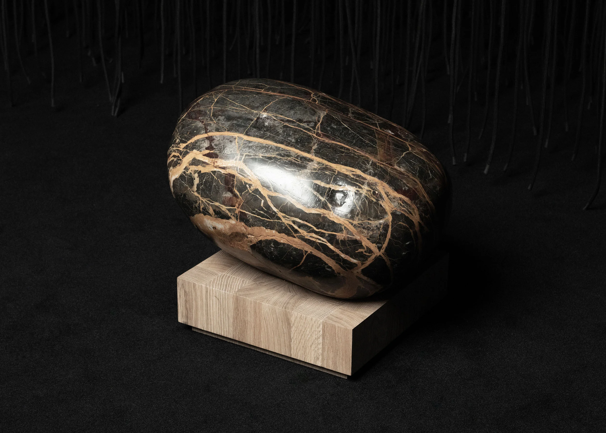 Reinterpreting the smooth, convex stones of their youth, Marc-Antoine Barrois and Antoine Bouillot transform the humble pebble into monumental form. Using high-definition 3D scanning and digital modeling developed with designer Guillaume Bellon, each original beach stone is enlarged and recast as a sculpture that doubles as a seat or bench. The resulting works, at once monumental and tender, translate the perfection of natural imperfection into contemporary form