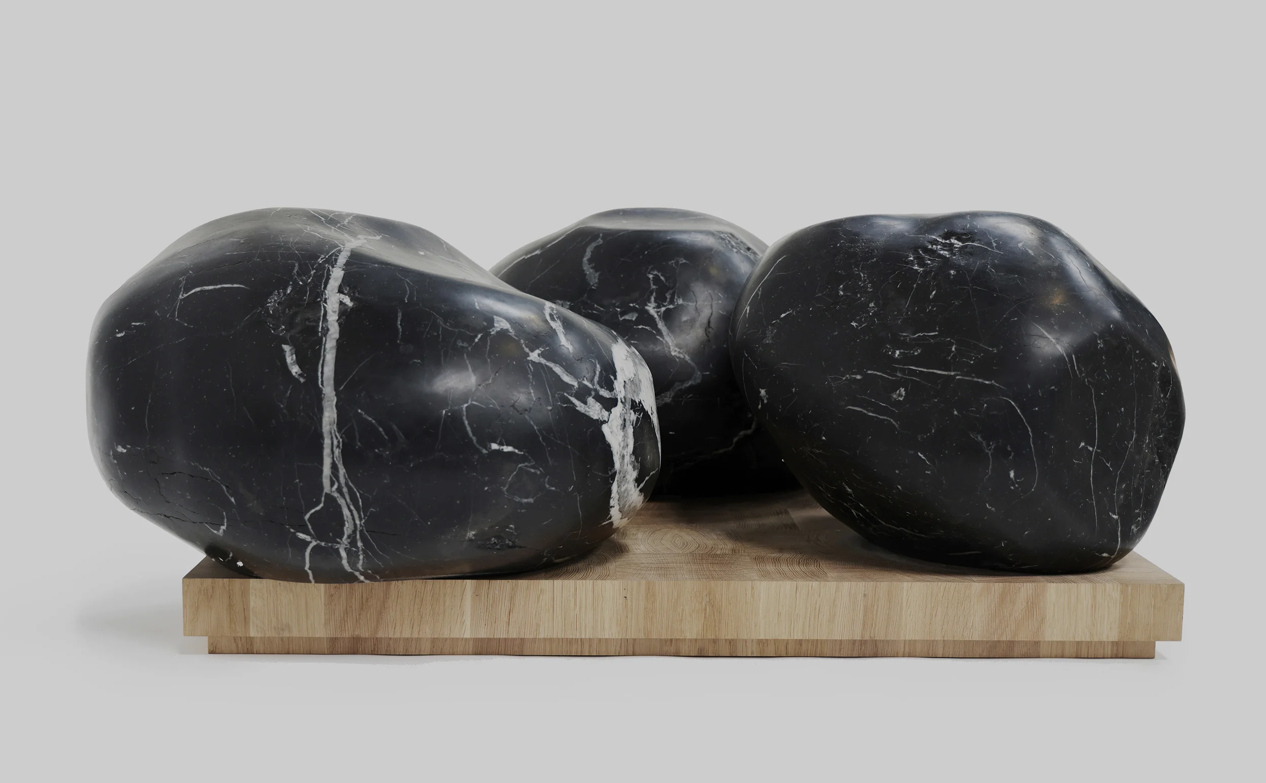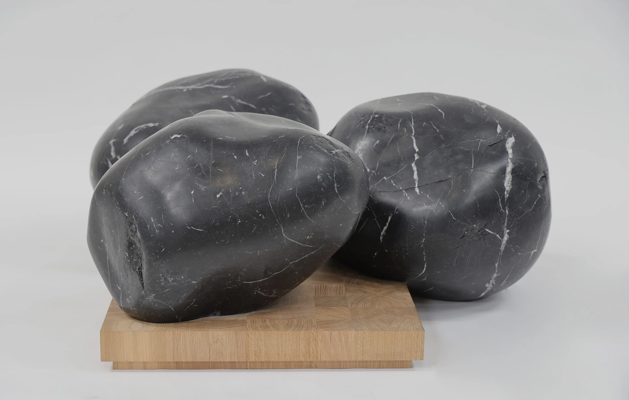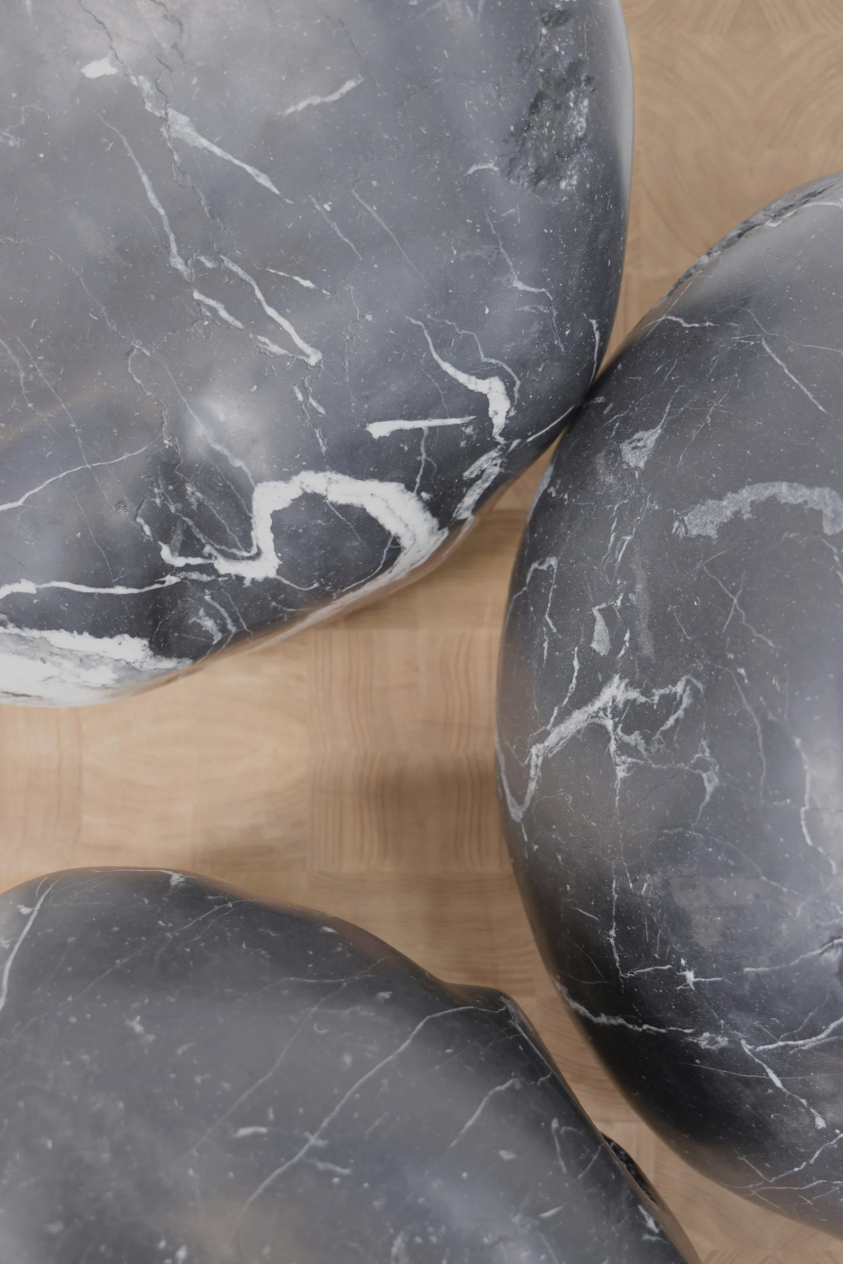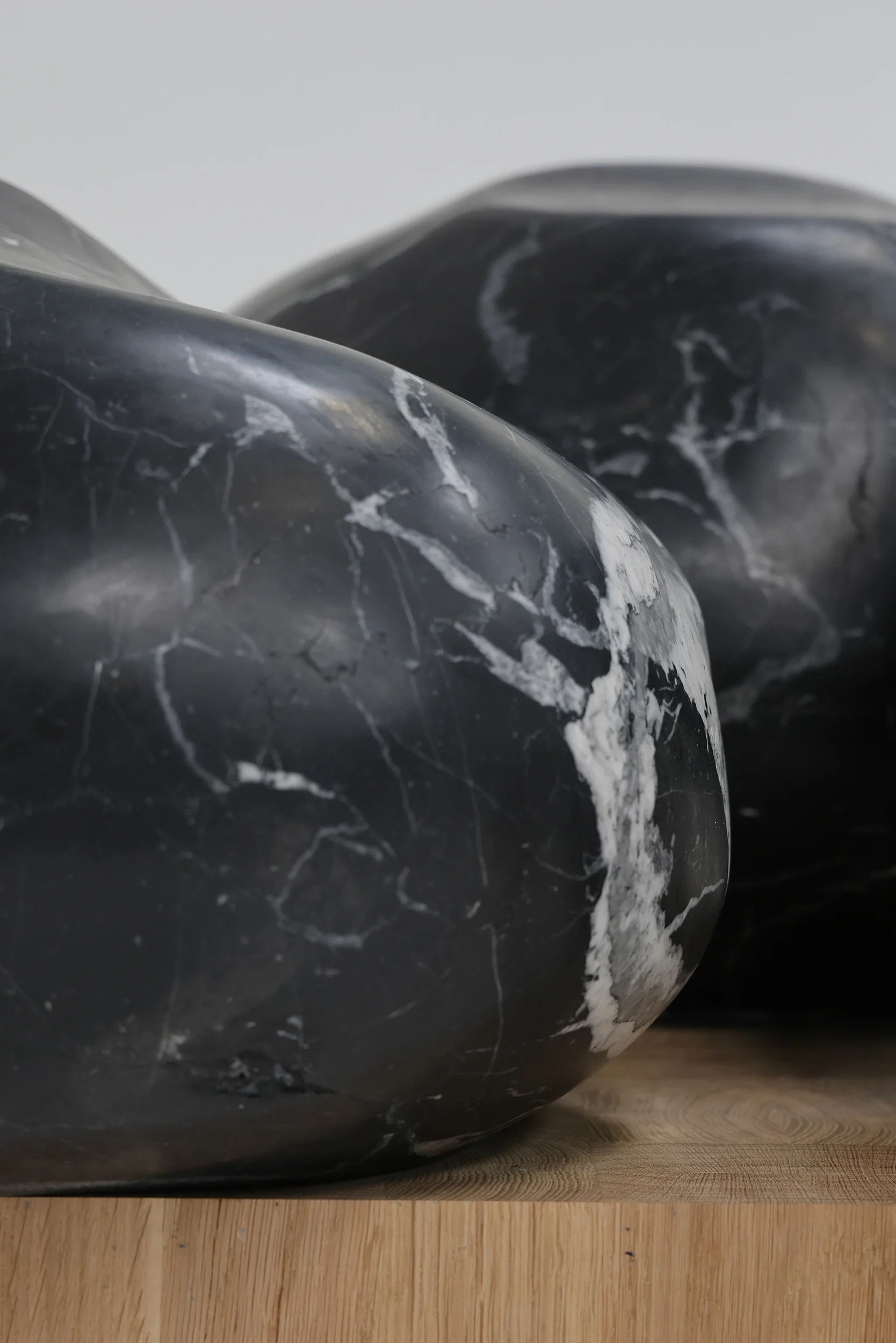 Reinterpreting the smooth, convex stones of their youth, Marc-Antoine Barrois and Antoine Bouillot transform the humble pebble into monumental form. Using high-definition 3D scanning and digital modeling developed with designer Guillaume Bellon, each original beach stone is enlarged and recast as a sculpture that doubles as a seat or bench. The resulting works, at once monumental and tender, translate the perfection of natural imperfection into contemporary form