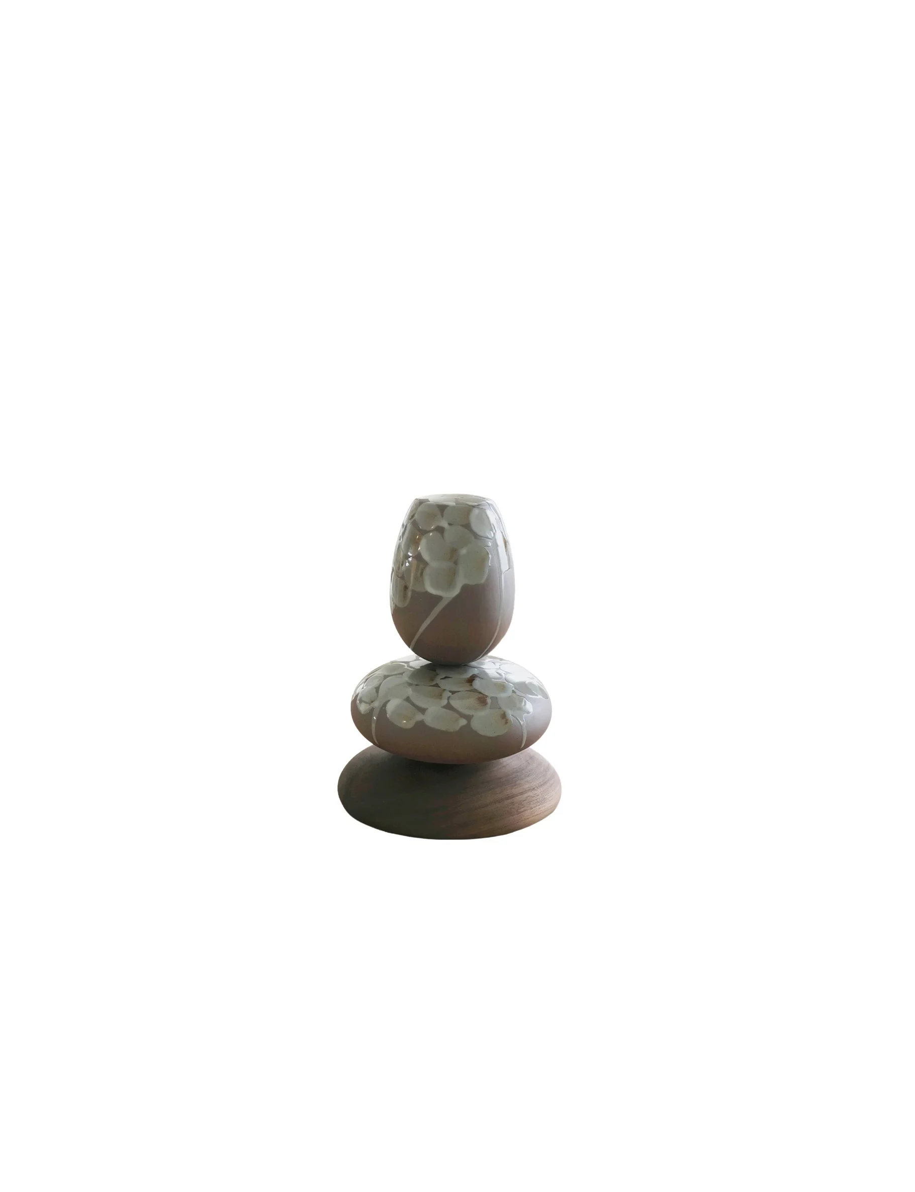 Following firing, the vessels are assembled on a discreet wooden base reinforced with a hidden steel structure, ensuring stability while preserving the visual clarity of the stacked forms. The neutral, restrained palette situates the work in close dialogue with the natural world, evoking stone, earth, and mineral, while contributing to the sculptures’ sense of timelessness. Balancing formal rigor with material sensitivity, Stack Vessels stands as a refined investigation into precision, restraint, and the quiet complexity of ceramic construction